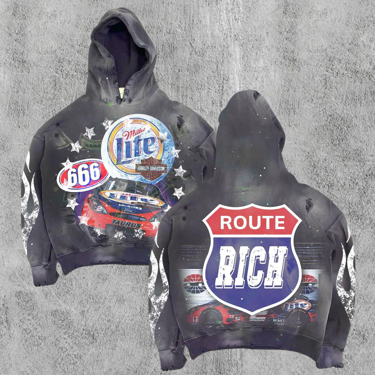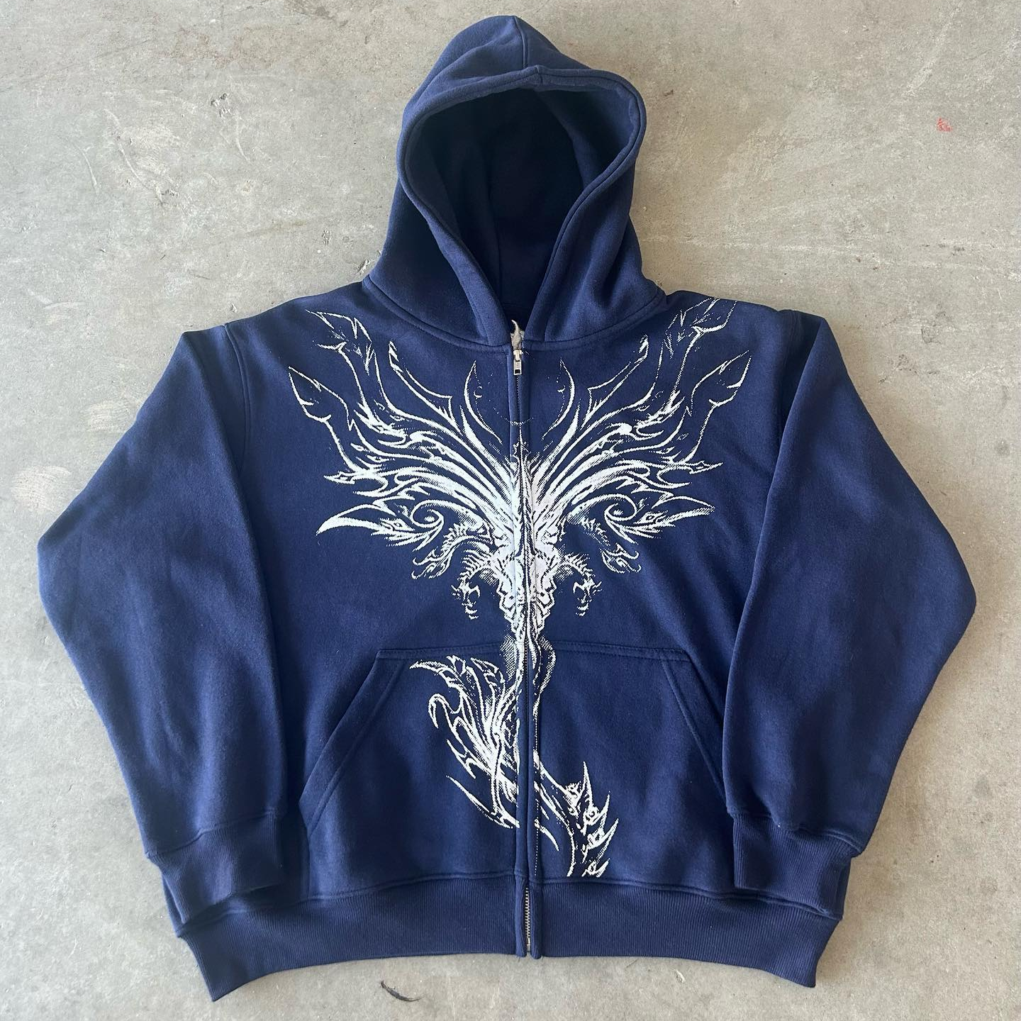 Trendy Retro Print Street Hip Hop Long Sleeve Hoodie
