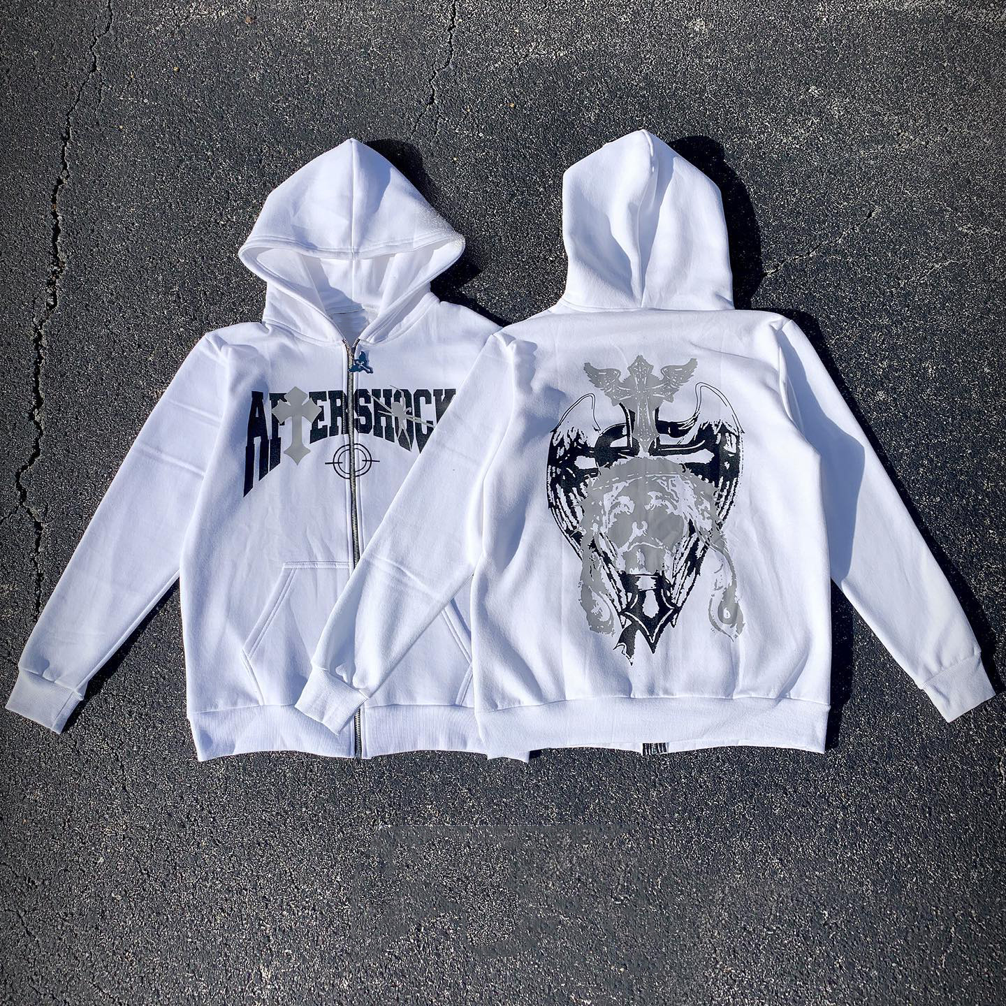 Jesus Christ Print Long Sleeve Applique Embroidered Zipper Hoodies