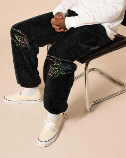 Casual personality fleece print bouquet foot trousers