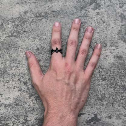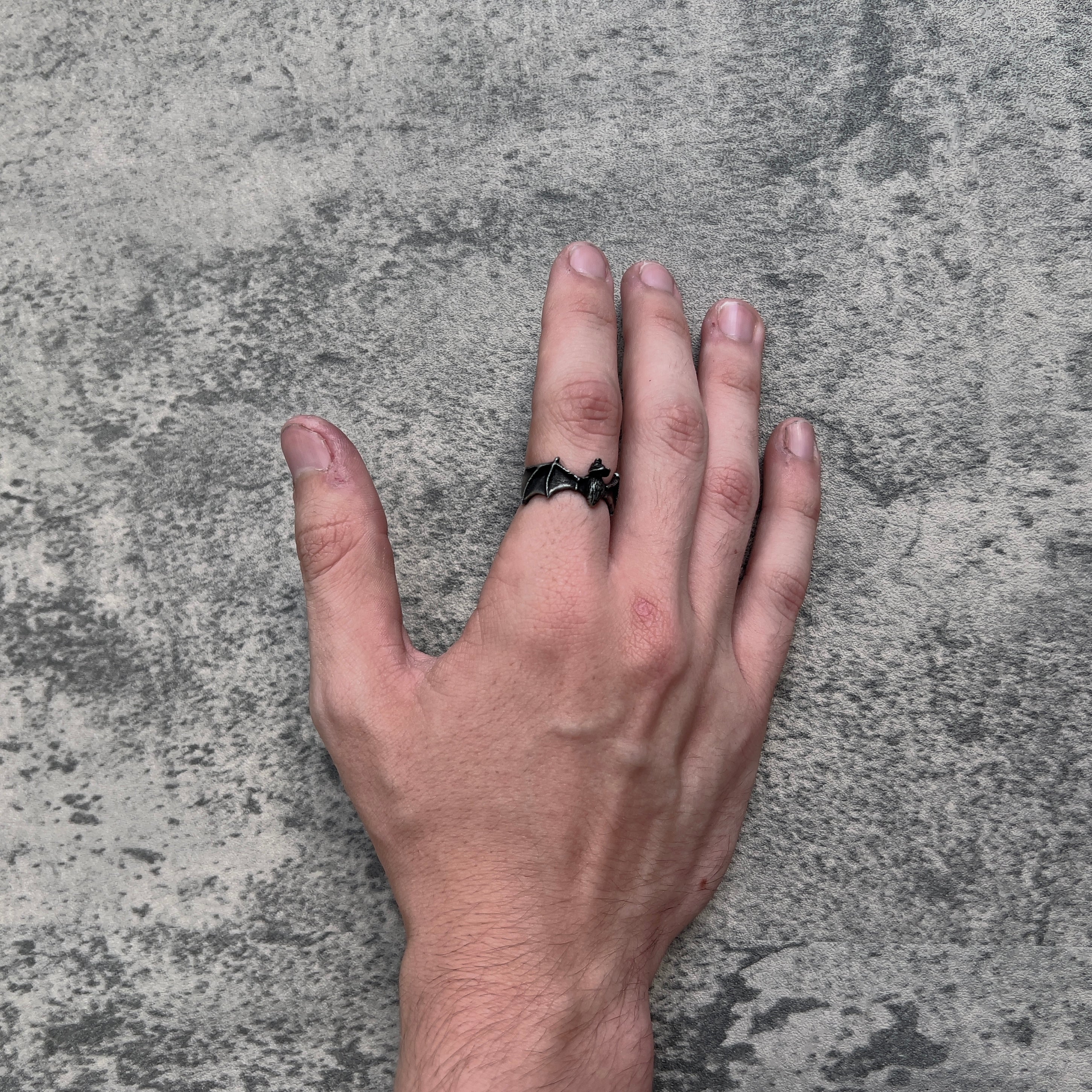RING HAS BEEN TREATED WITH AN ASHY COLOR COAT WHICH CAN LEAVE A BLACK RESIDUE ON FINGER, WE SUGGEST RINSING RING BEFORE USE