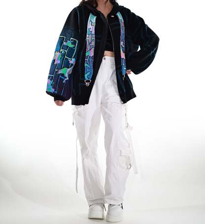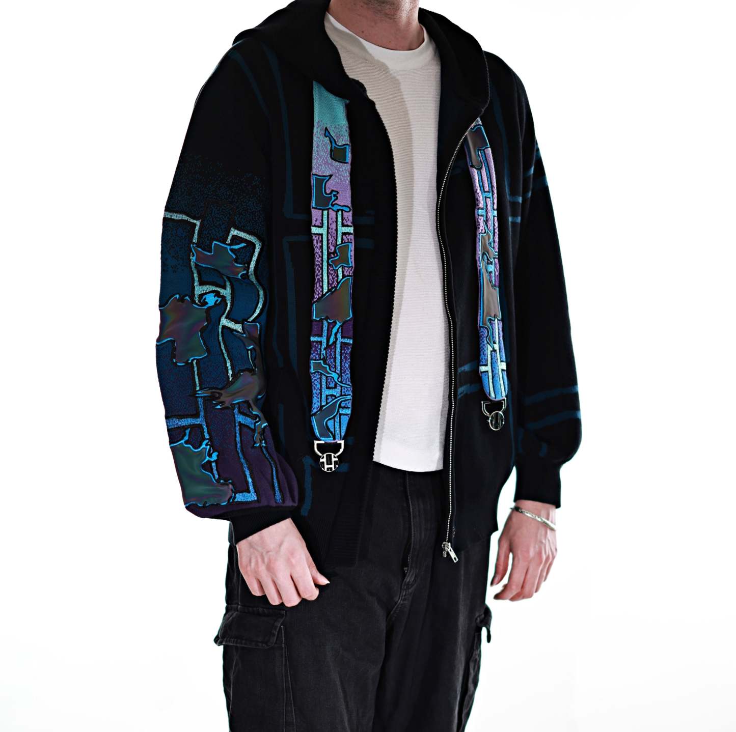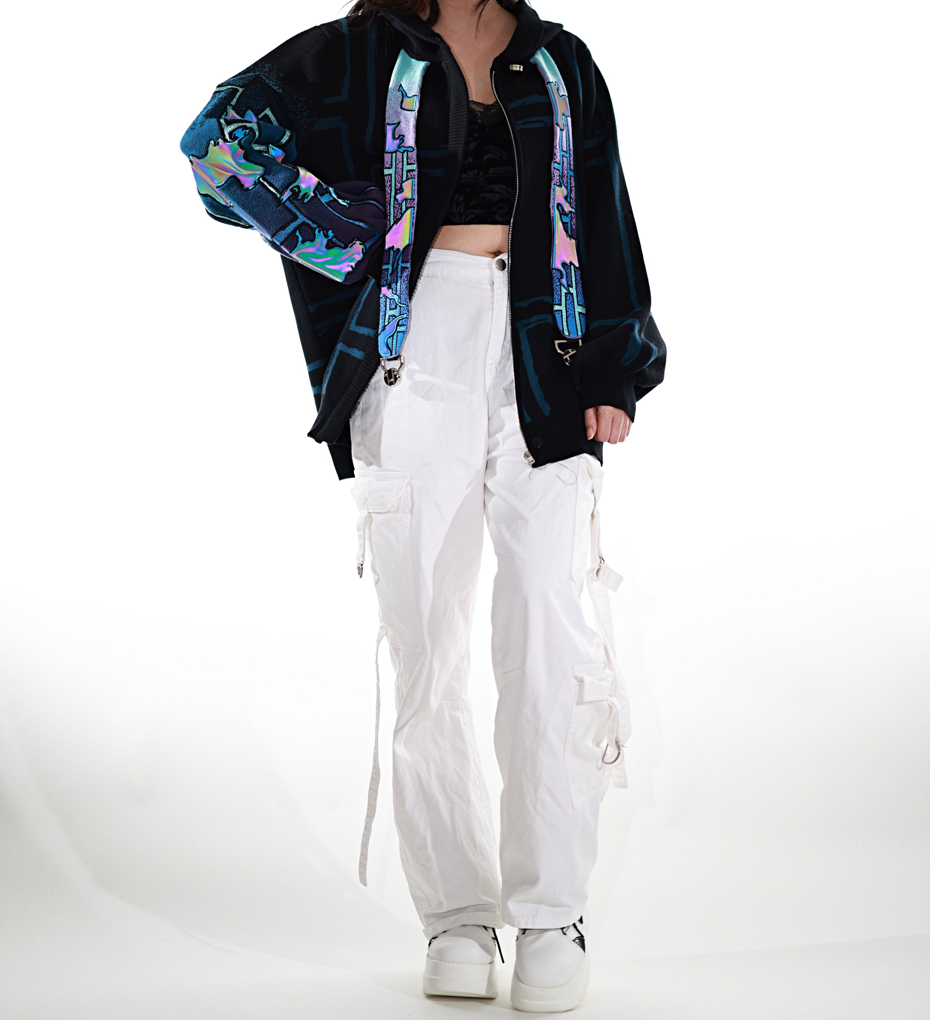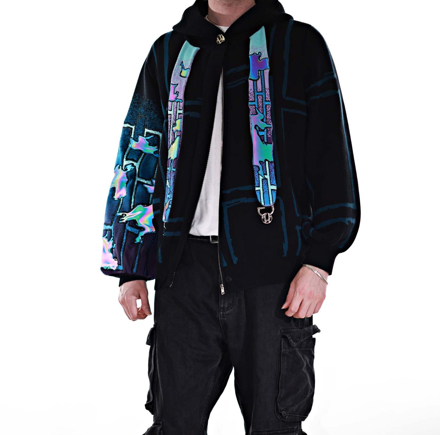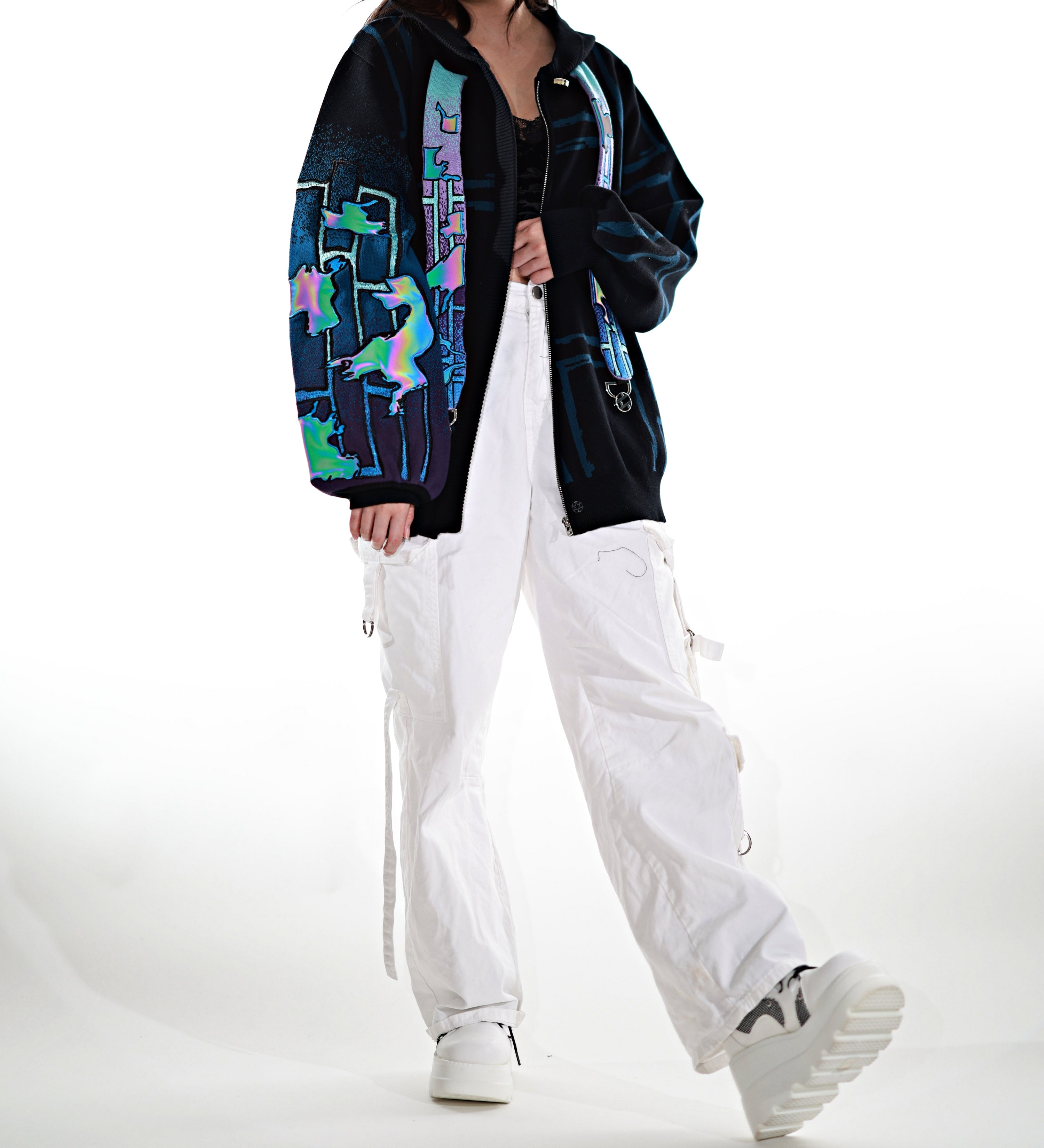 This whole collection features some of the most detailed embroidery we have ever made. The rainbow dragon on the back is made from over 100000 stitches and takes over 10 hours to stitch out. The new added holographic appliqué on the sleeve is something no brand has ever done & creates a super unique effect with beautiful colors. The total production time for this design is over 24h & we are working with all factories we have collaborated with so far to make the launch of this design possible! The rainbow material remains more subtle in most lighting situations. The design also features our new magnetic buttons and pendants that let you customize your hoodie and add your own touch! It comes with a set of button top pieces that can easily be interchanged with top pieces from other hoodies from this collection. You will also be able to purchase complementary top pieces as an add on in the future to further customize these hoodies. The pieces are made from high quality metal and black resin. The fabric is made from the highest quality 100% cotton yarns. The design also features a beautiful gradient jacquard patterns on the sleeves and a curved Zipper to give this design an even more unique look.