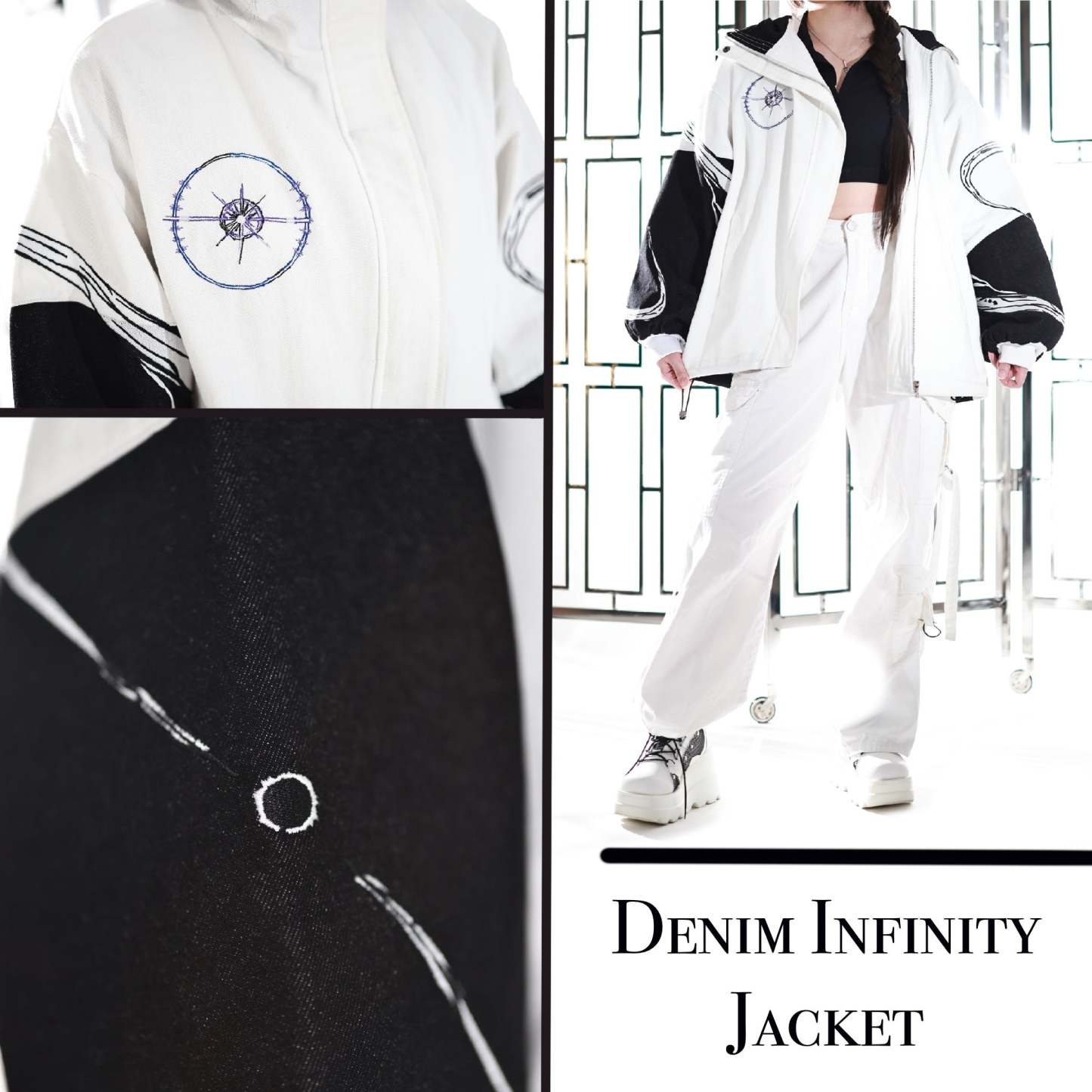 This whole collection features some of the highest quality items we have made. The jacket is made from a mix of highest quality 100% cotton & denim fabrics. The jacket also has very soft lining which ensures comfort when you wear it and keeps you warm during colder days. Our goal is to make subtle cosplay and casual anime inspired outfits in the same quality as regular clothing from luxury brands. This jacket is no exception. It is made to last so that you can comfortably wear as your every day jacket it in public or as a subtle cosplay at conventions. All details on the jackets are fully embroidered. It features and enlarged and more detailed version of our Beta fish embroidery on the back featuring beautiful gradients. The sleeves additionally feature two embroidery patterns inspired by G's infinity spanning from top to bottom. Since the jacket is not made from regular cosplay fabric, it is perfect to casually wear & to stand out in a positive way.