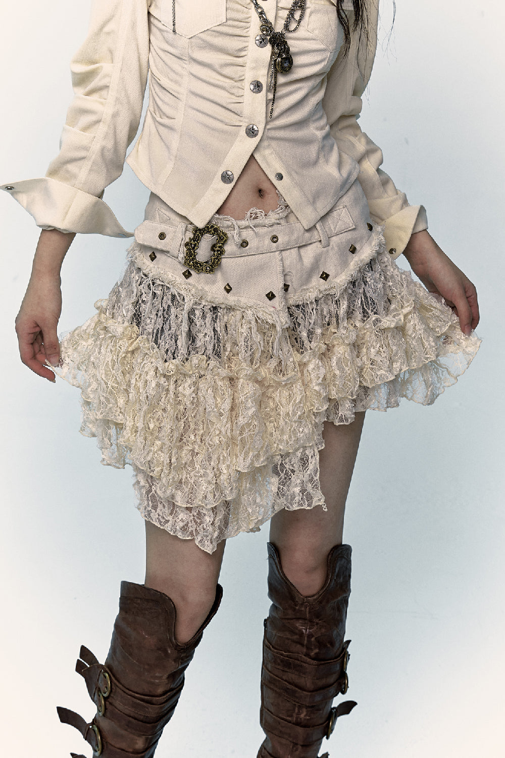 - Layered lace ruffle hem