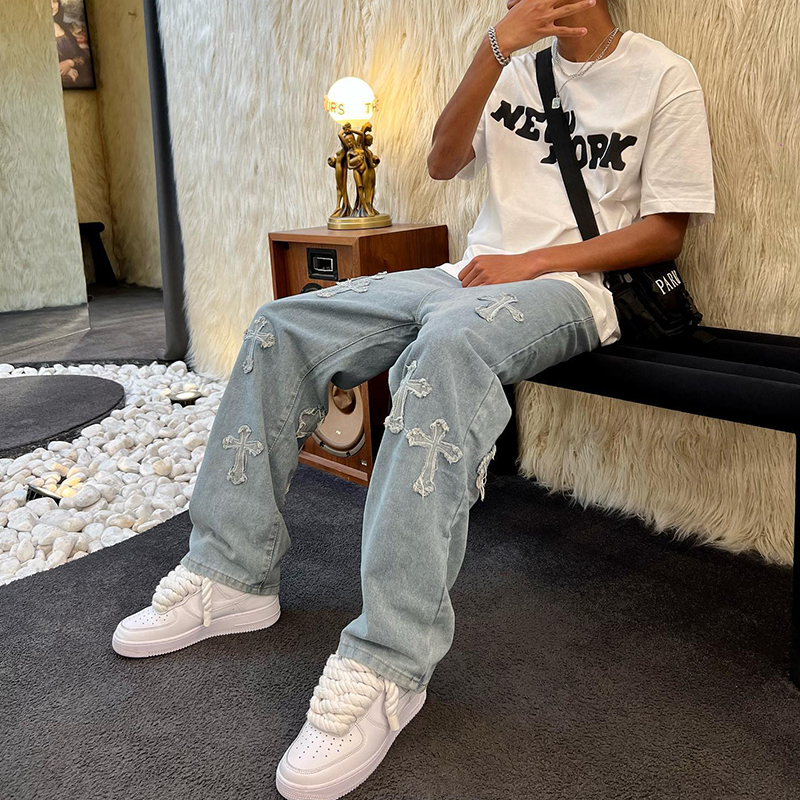 Men's Stylish Cross Cross Patch Street Jeans