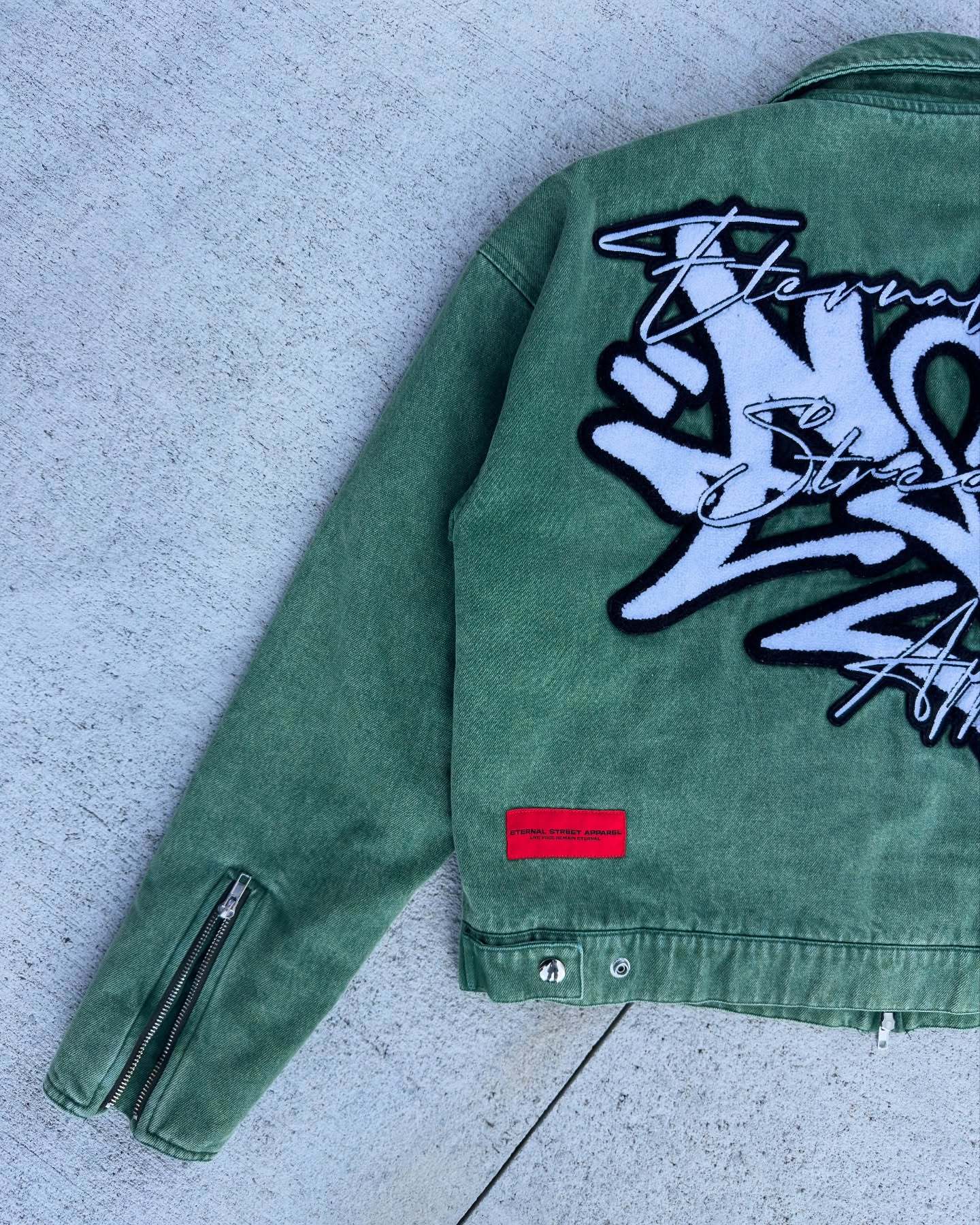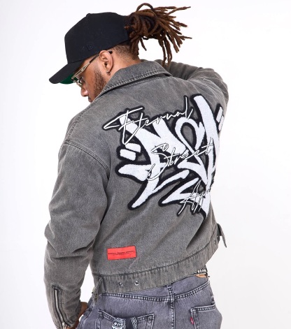 Details: Chenille patch w/ embroidery, satin brand patch (back)