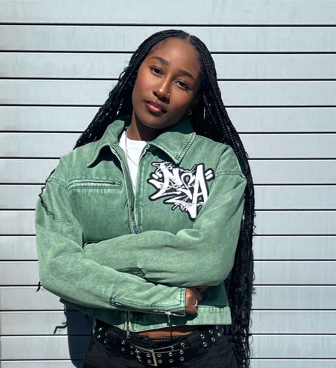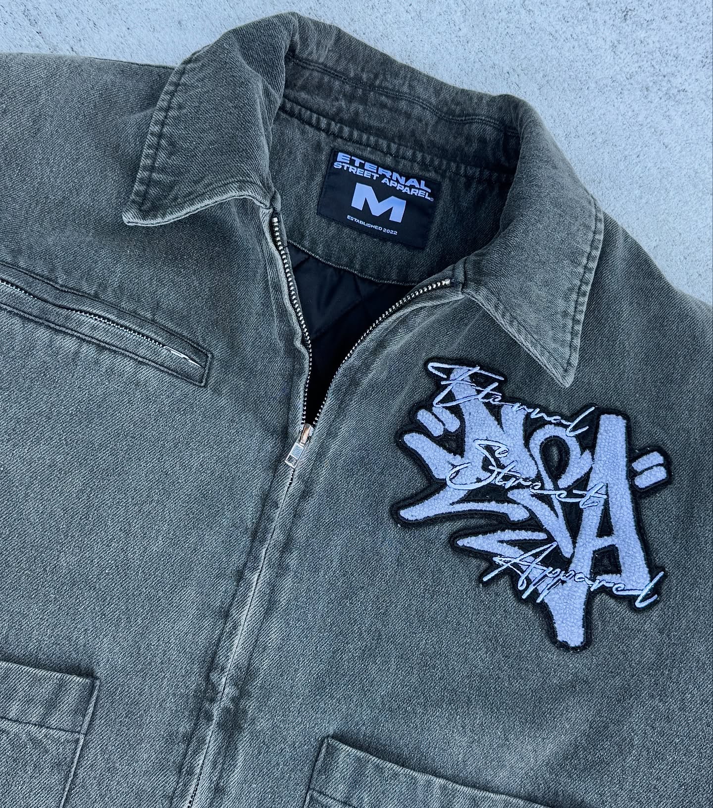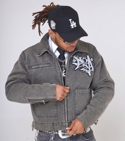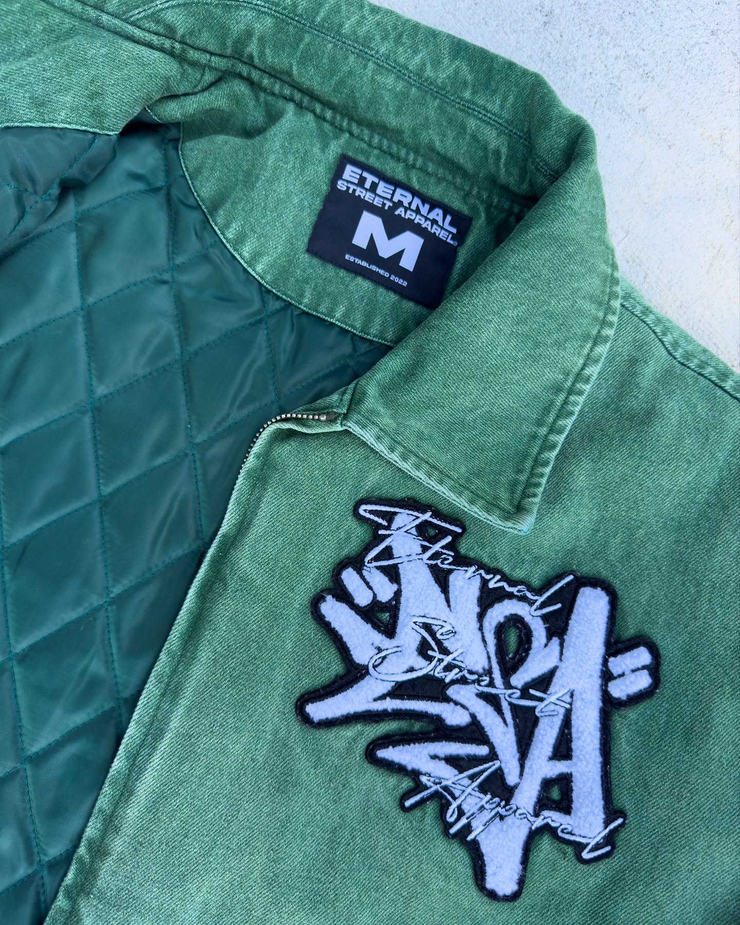 Material: Acid-washed denim, quilted inner lining
