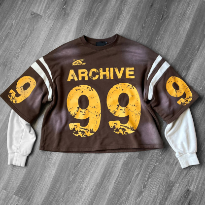 Personalized fashionable loose fake two-piece round neck sweatshirt