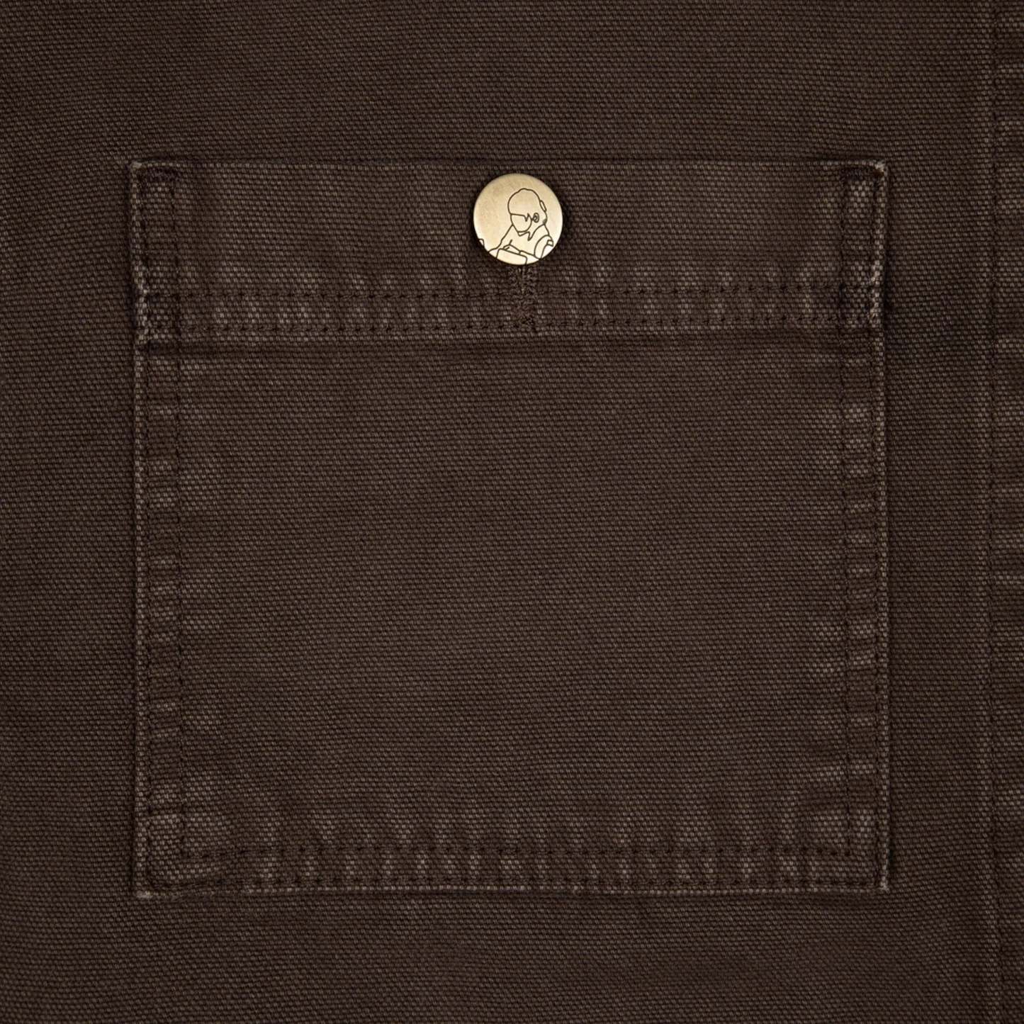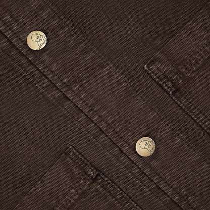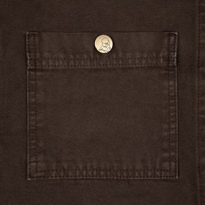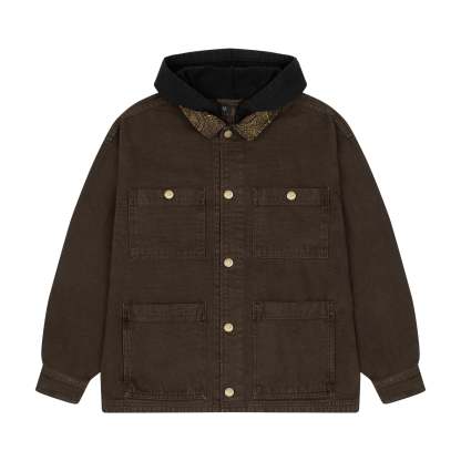 430 gsm canvas fabric / 460gsm brushed cotton hood / 100% cotton / embroidery on back and collar / pockets on front / custom buttons / fits true to size