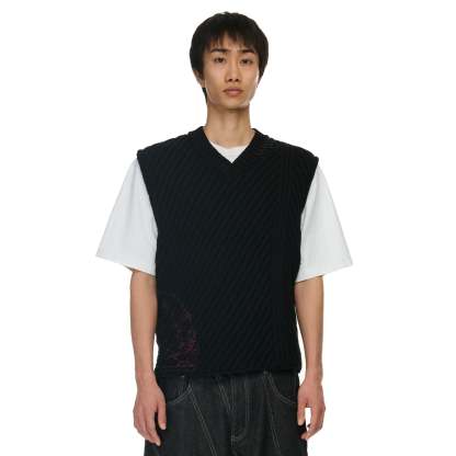 diagonal ribbed knit / 100% cotton / embroidery on front and back / hand-stitch detail on collar / fits true to size