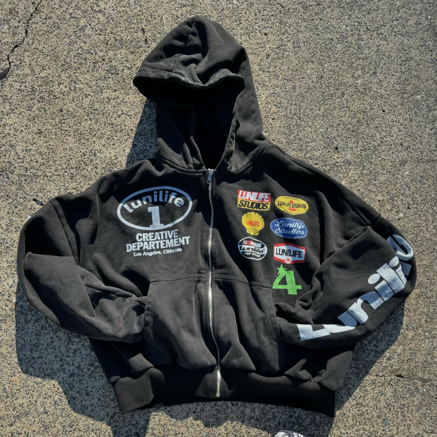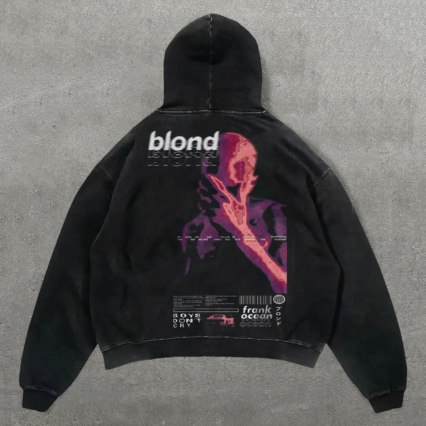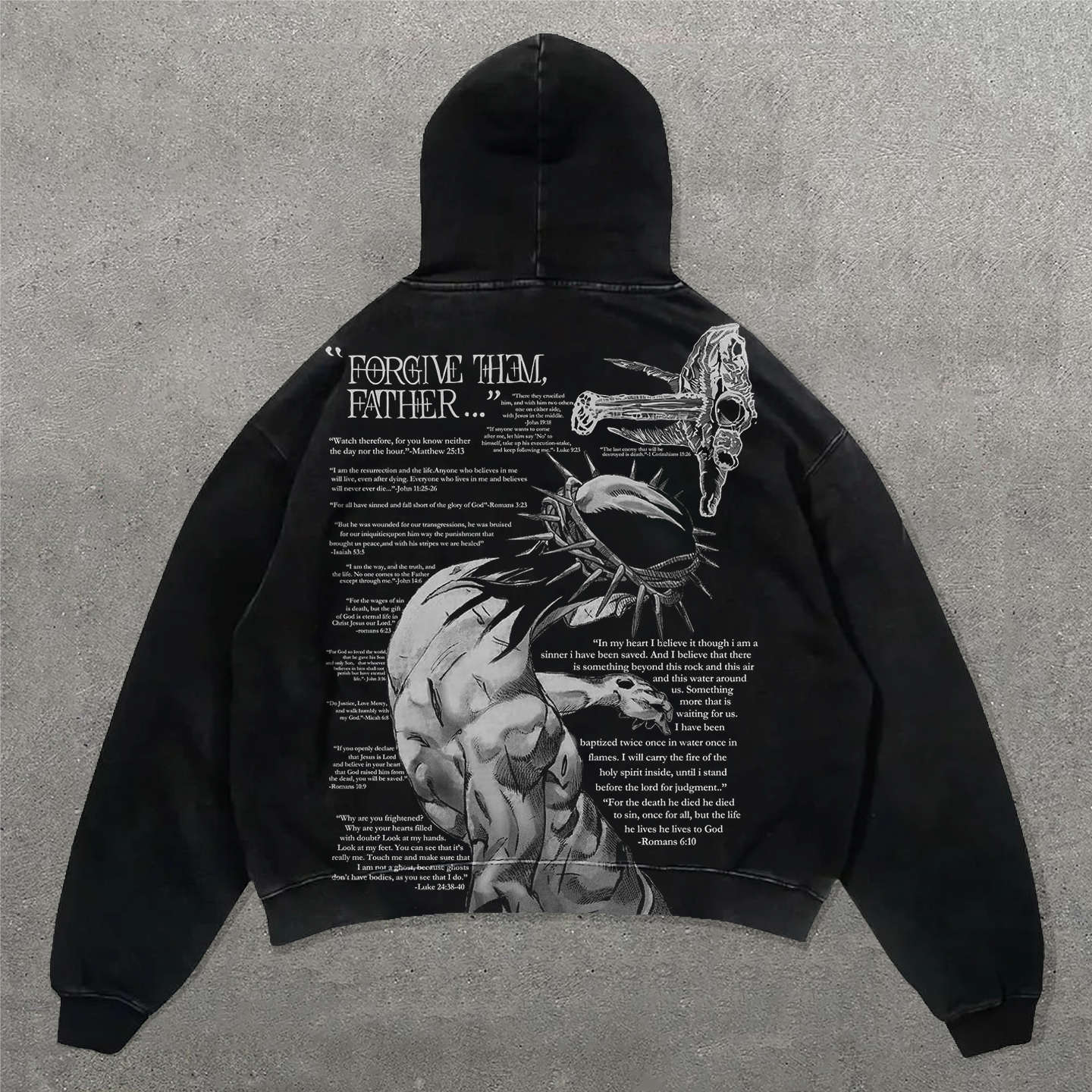 Trendy Retro Print Street Hip Hop Long Sleeve Hoodie