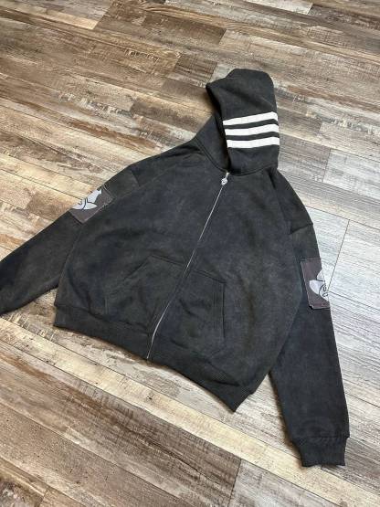 This is our classic hoodie made of double-layer thick acid washed French terry.