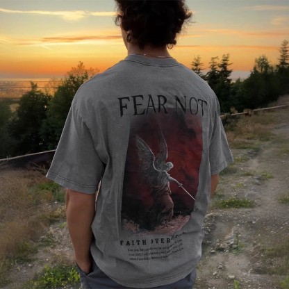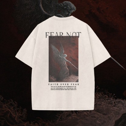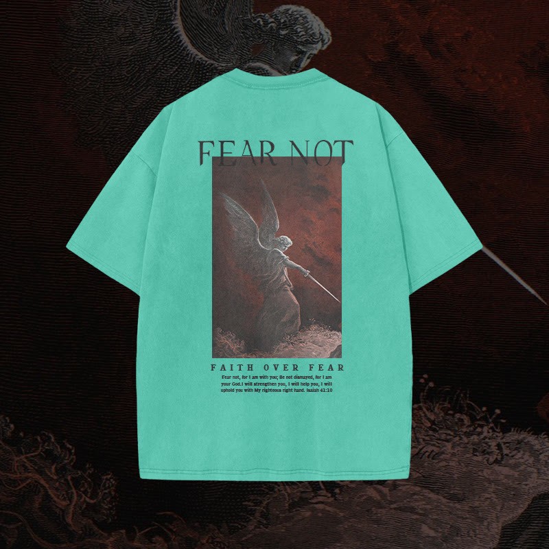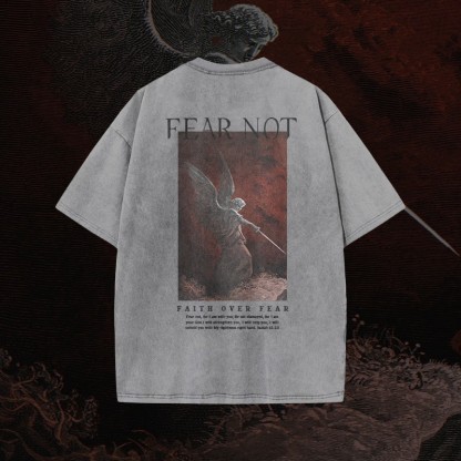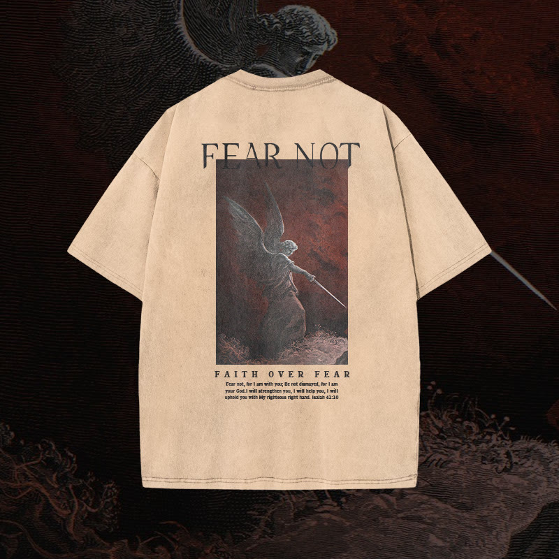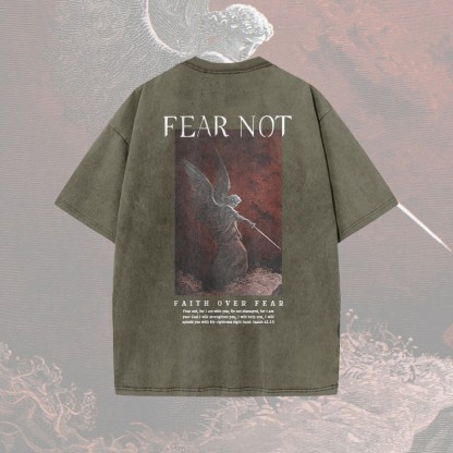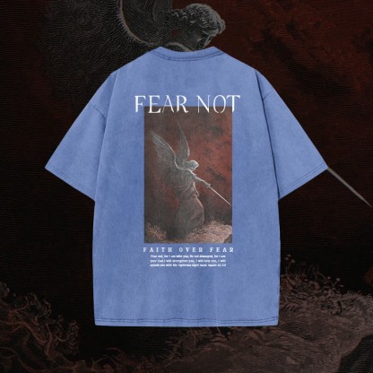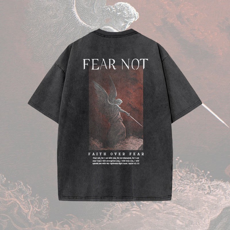 (🆕 New Arrival)100% Cotton™️ Fear Not Print Acid Washed T-shirt
