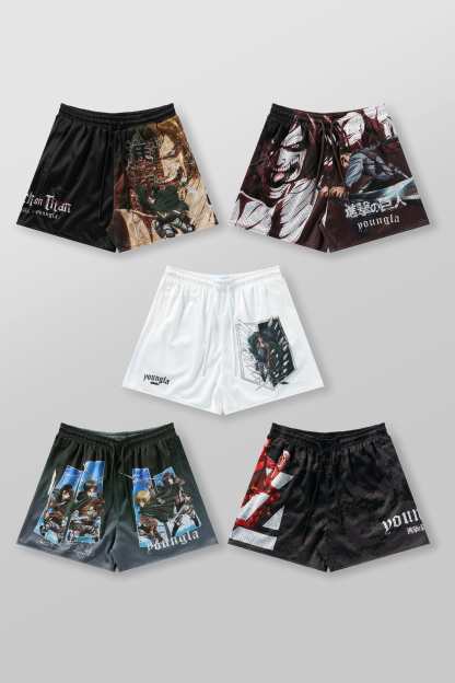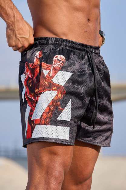 DESIGN: Unleash your inner Titan with these "Attack on Titan" mesh shorts. Crafted for ultimate comfort and breathability, these shorts feature a striking design inspired by the iconic anime series. The detailed graphic showcases a fierce Titan, adding a bold statement to your casual or workout attire.