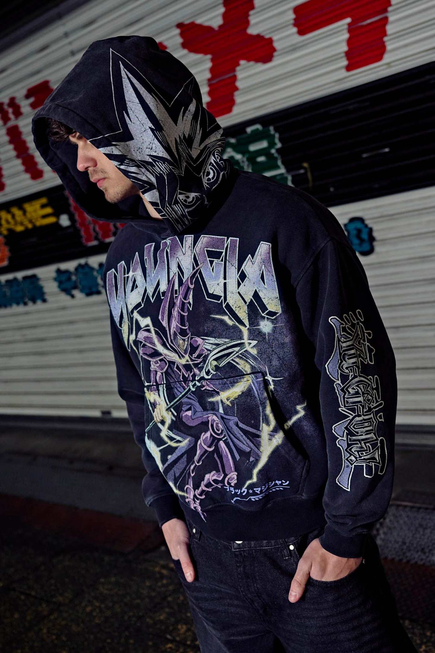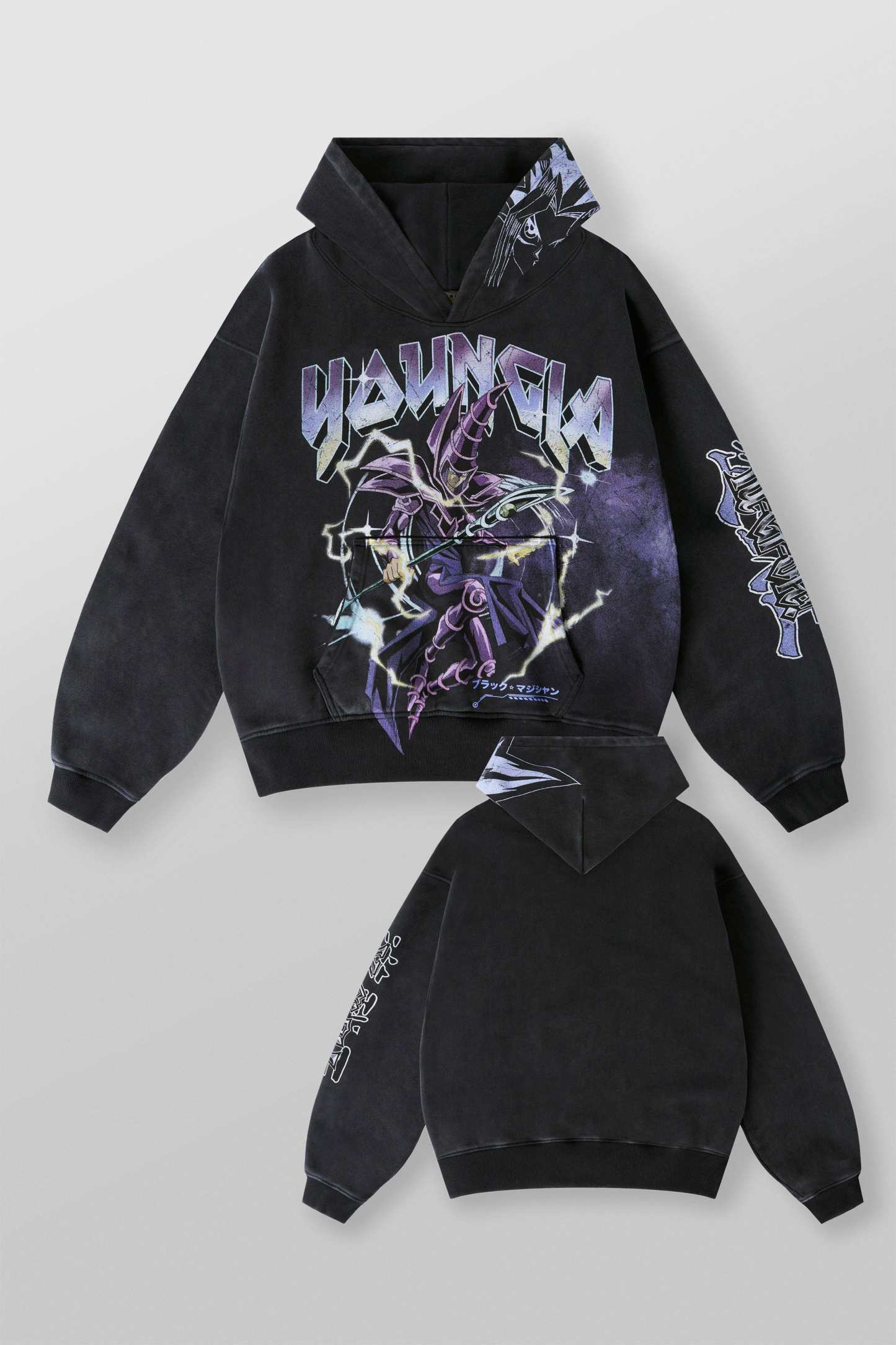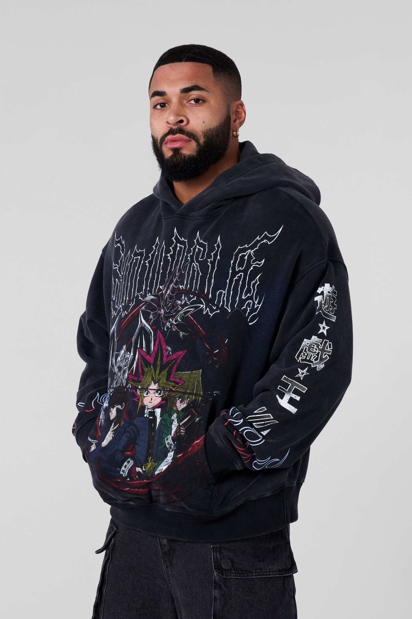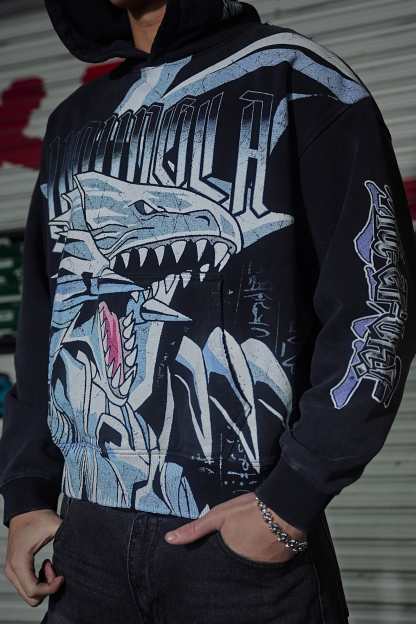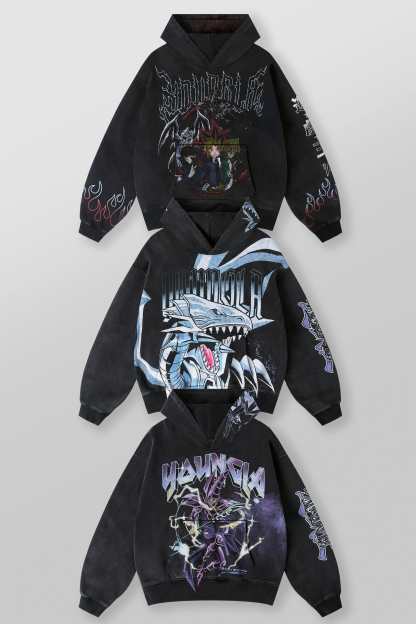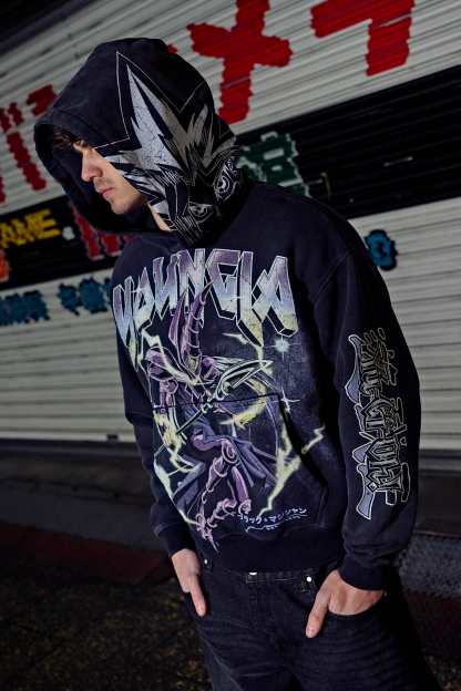 DESIGN: Crafted from 100% cotton, this oversized hoodie brings anime heat with a jumbo character print on the body, plus smaller graphic details on the sleeves and hood. The black fabric wash enhances the bold artwork, making it a must-have for Yu-Gi-Oh fans and streetwear lovers alike.
