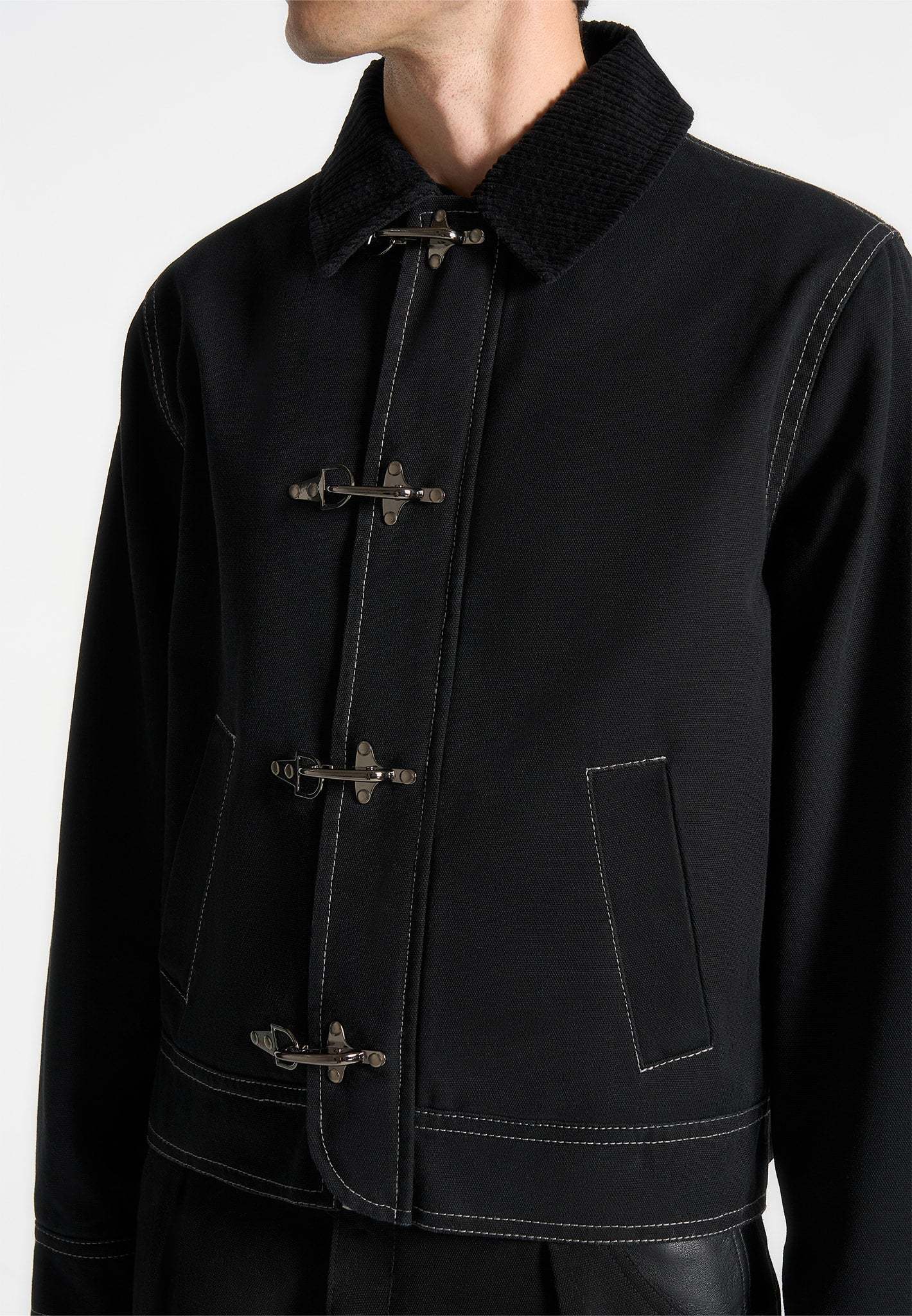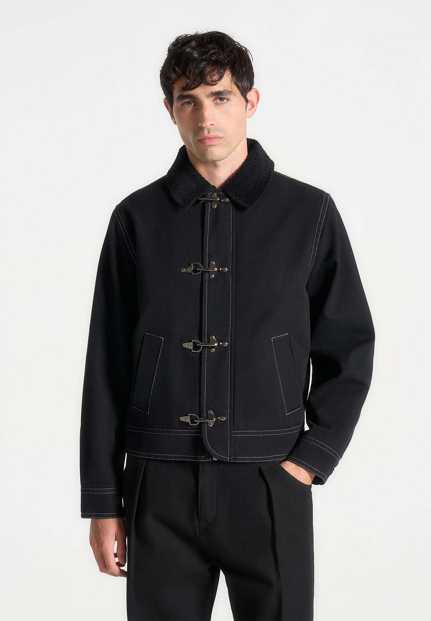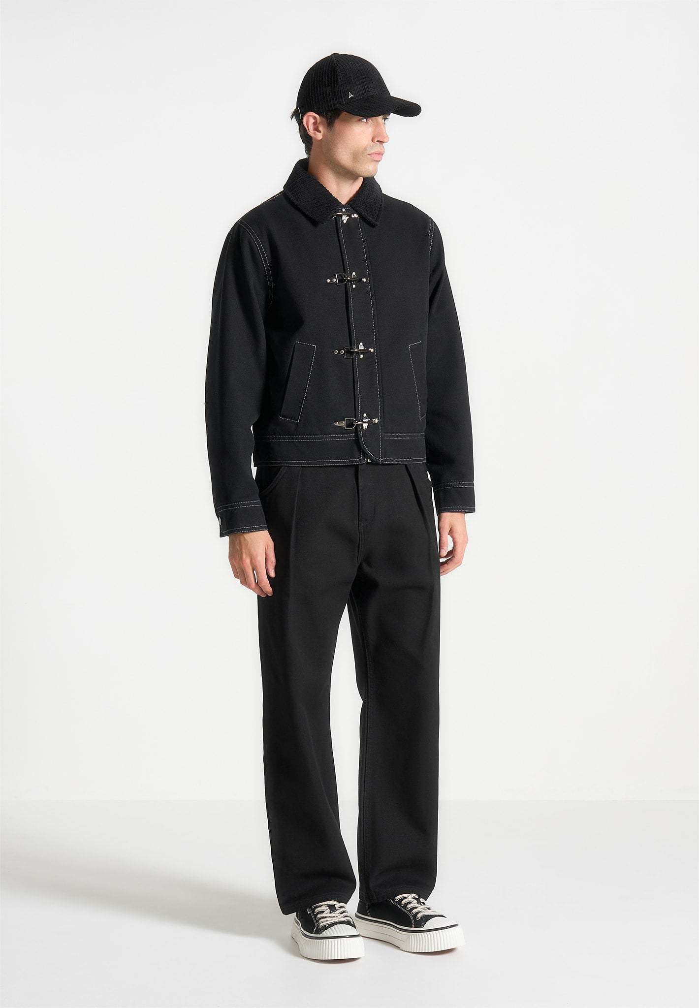 BLACK CONTRAST-STITCH GABARDINE BUCKLE JACKET