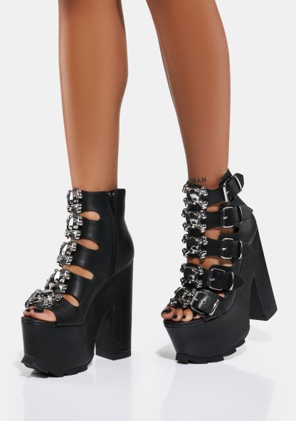 Black Dreamscape Skull Platform Heels