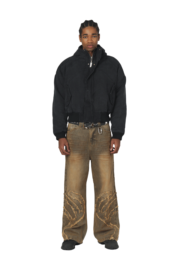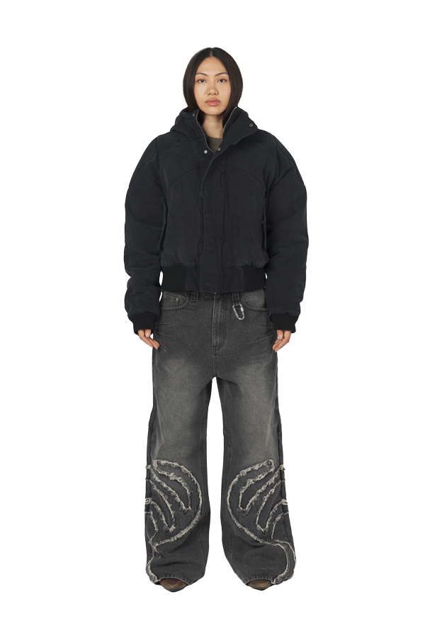 - Perfect Fit & Design- Magnetic Buttons- Ninja Hood- "Mecha" Pattern- Boxy and Cropped fit- Canvas Cotton- Individually Dyed and Washed