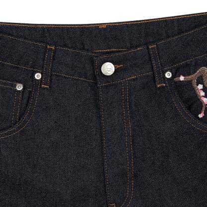 14,5oz raw denim / 100% cotton / embroidery on front and back pocket / embroidered leather patch / balloon fit (different to our usual fit) / wash inside out / fits true to size