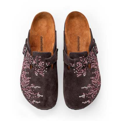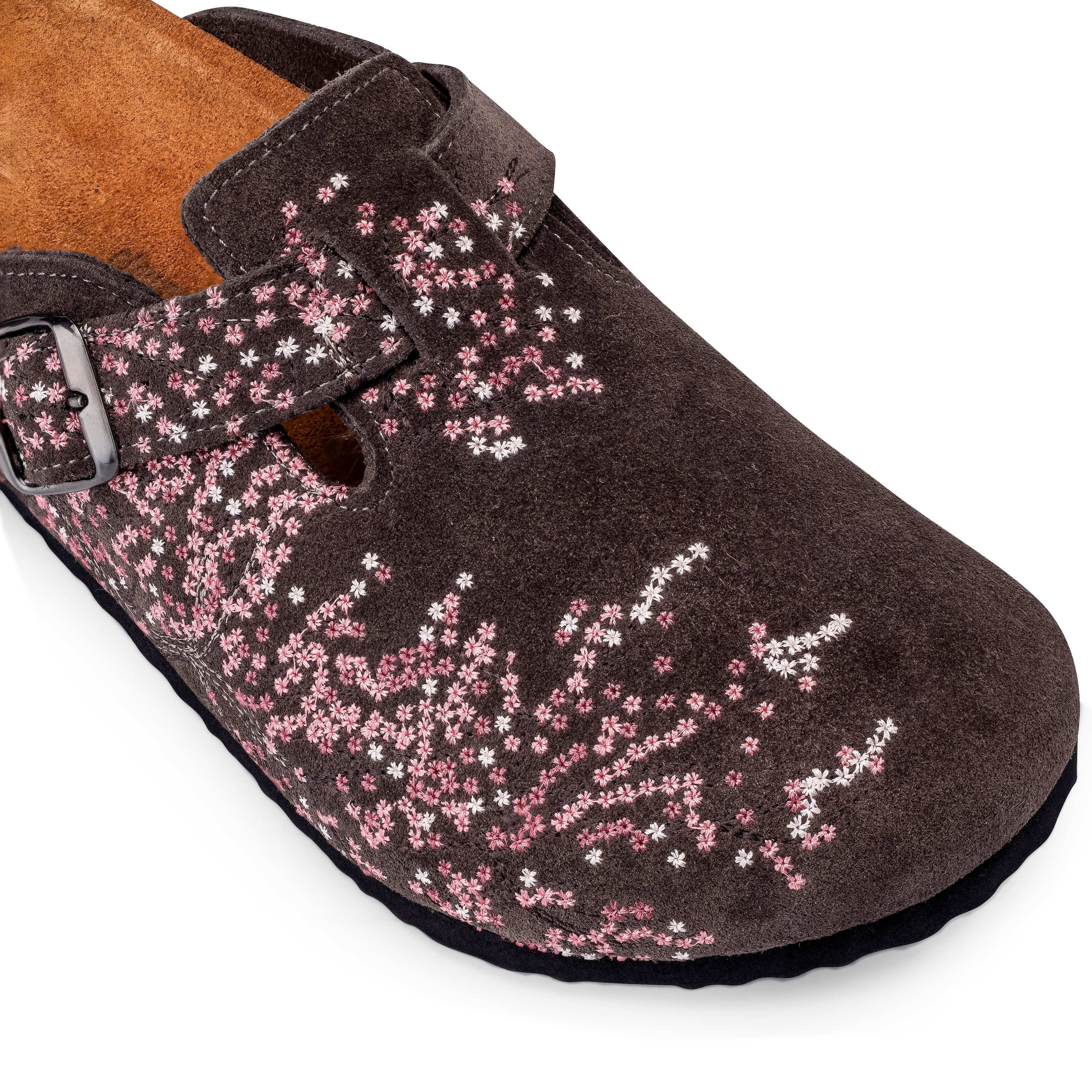 suede leather / leather inner-lining / cork footpad with eva outsole / embroidered side panels and belt / fits true to size / manufactured in Türkiye