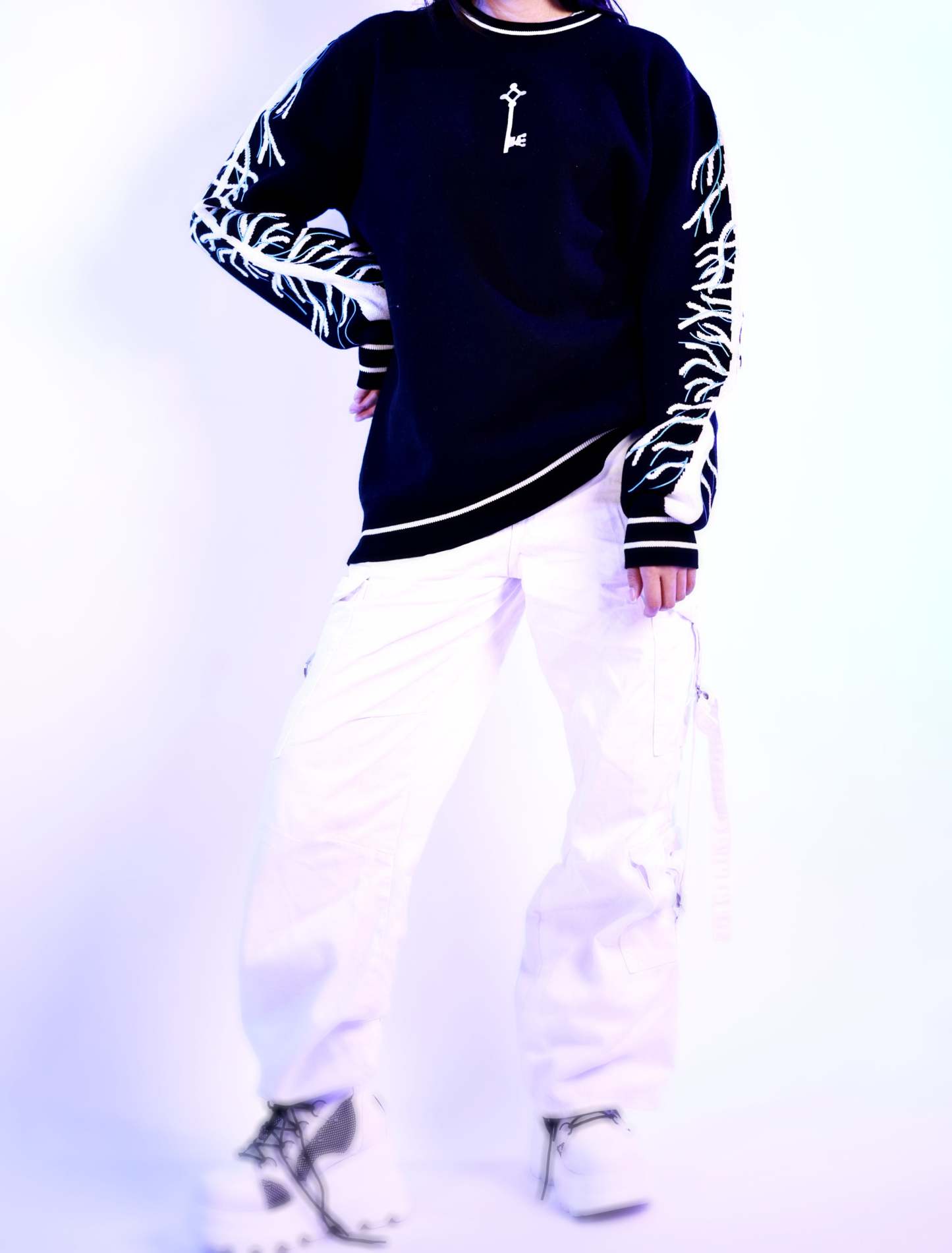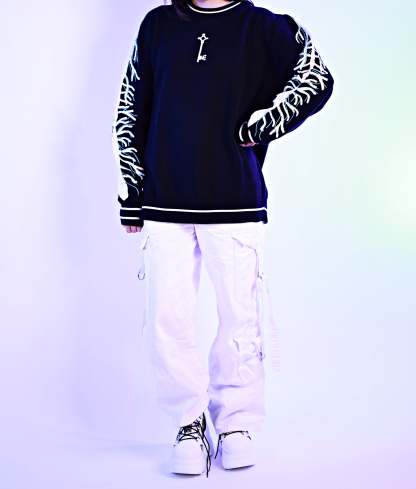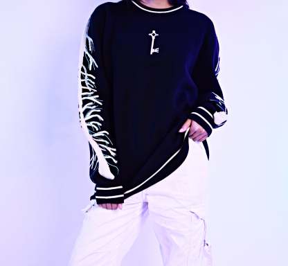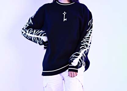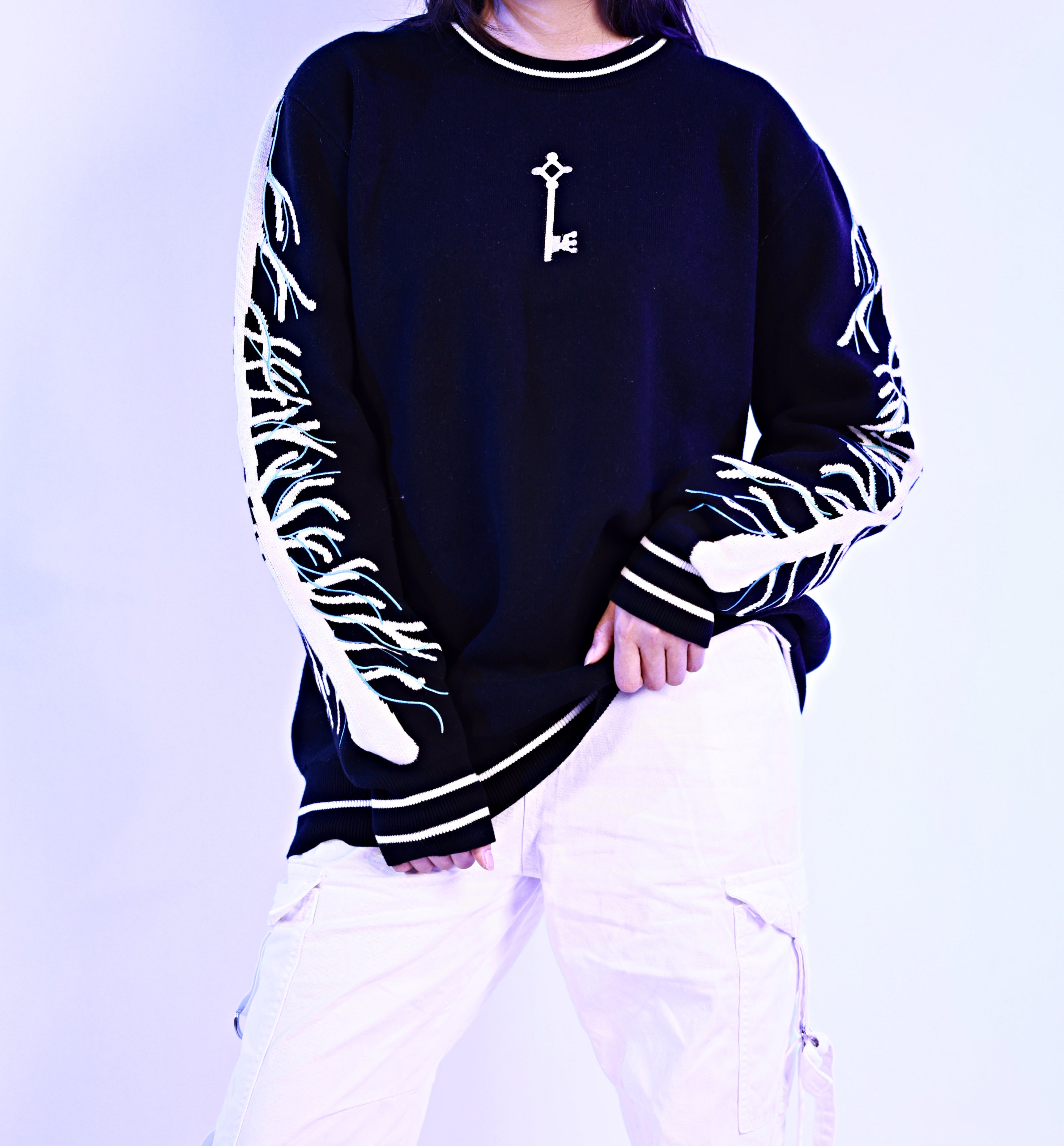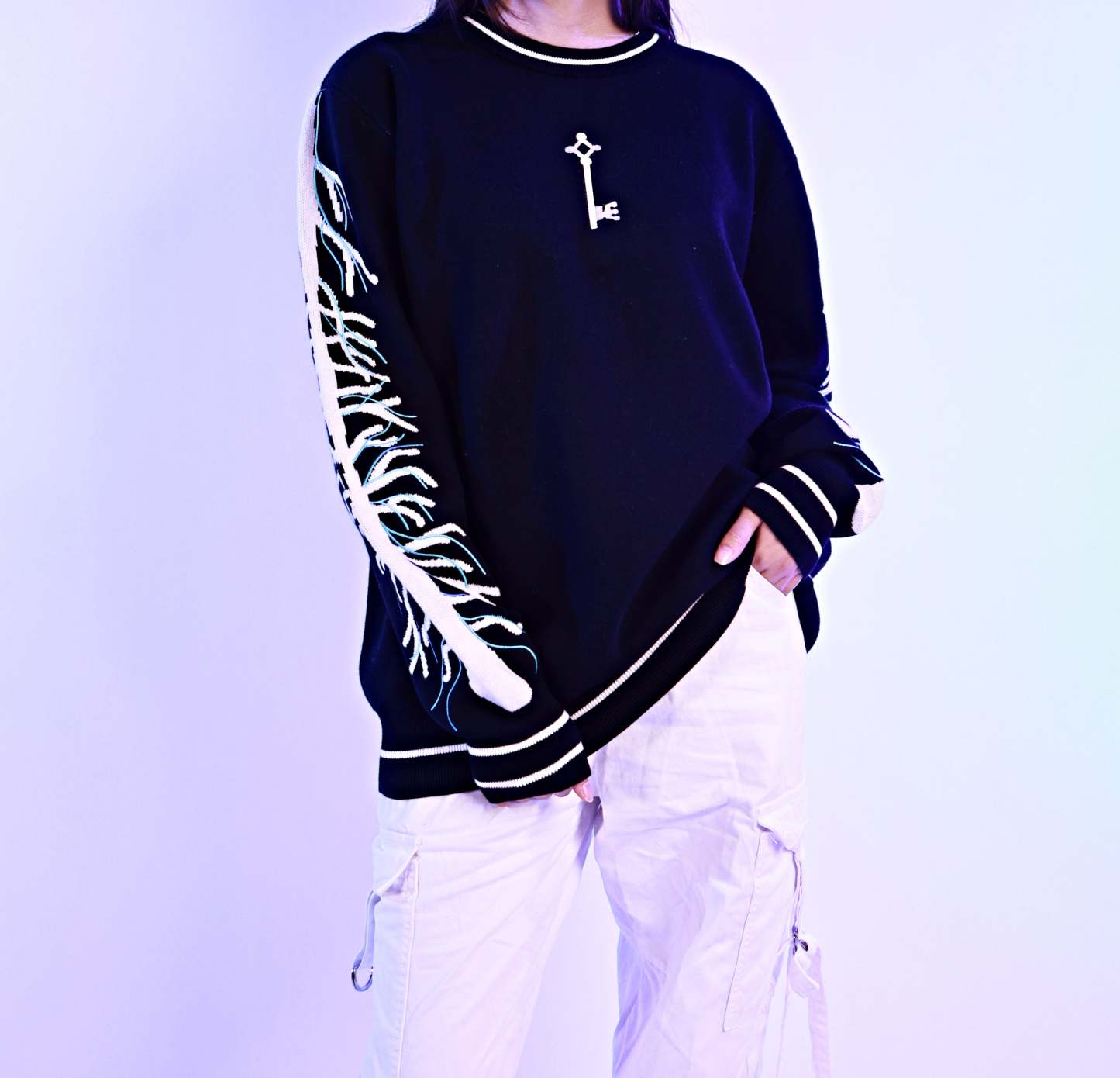 The design is inspired by Eren and has a unique pattern made from a mix of embrodiery and jacquard on the sleeves. The fabric is made from the highest quality 100% cotton yarns and features an embroidery design of Eren's key and "The End" on the back.