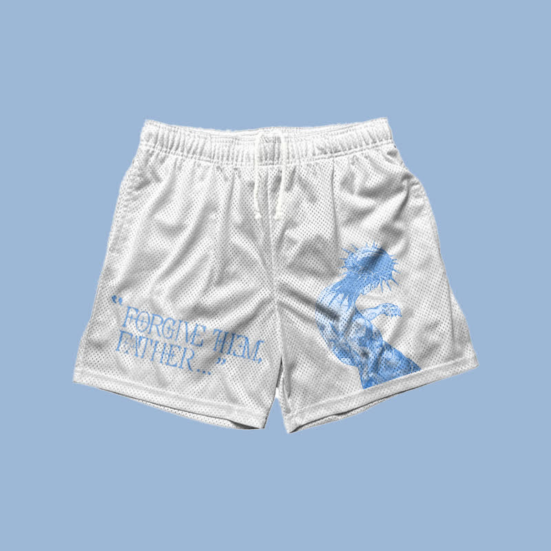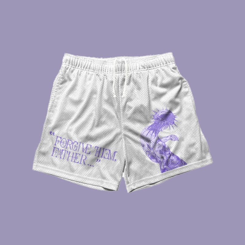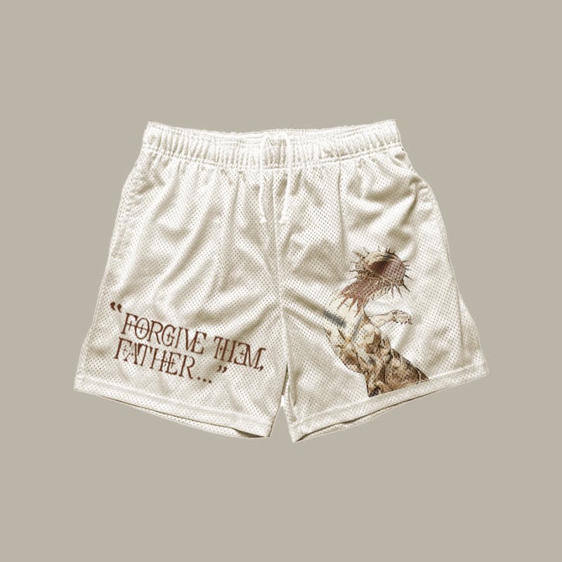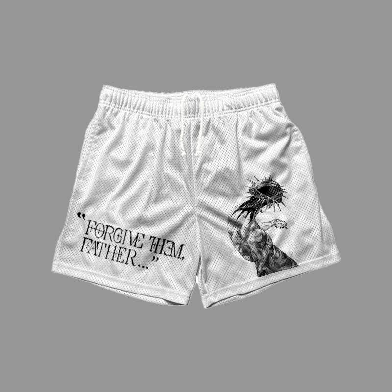 Forgive Them,Father Print Mesh Shorts