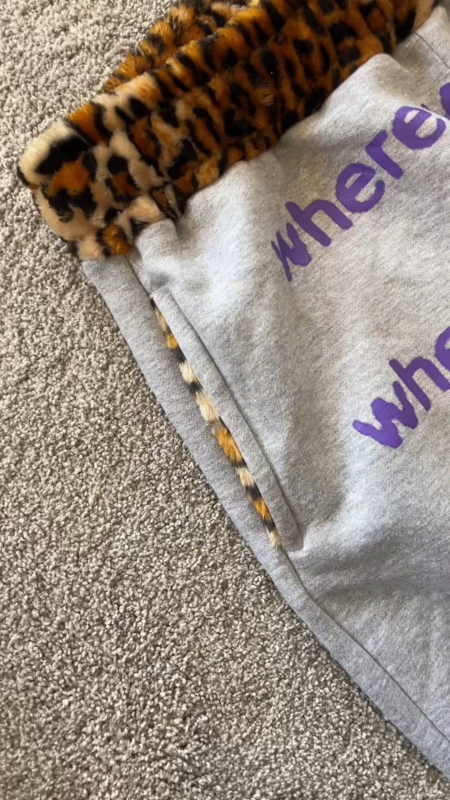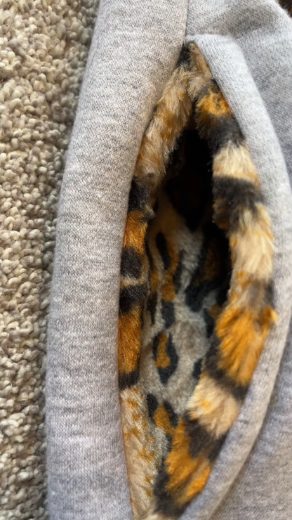 Unique leopard print fabric accents on the waist and pockets