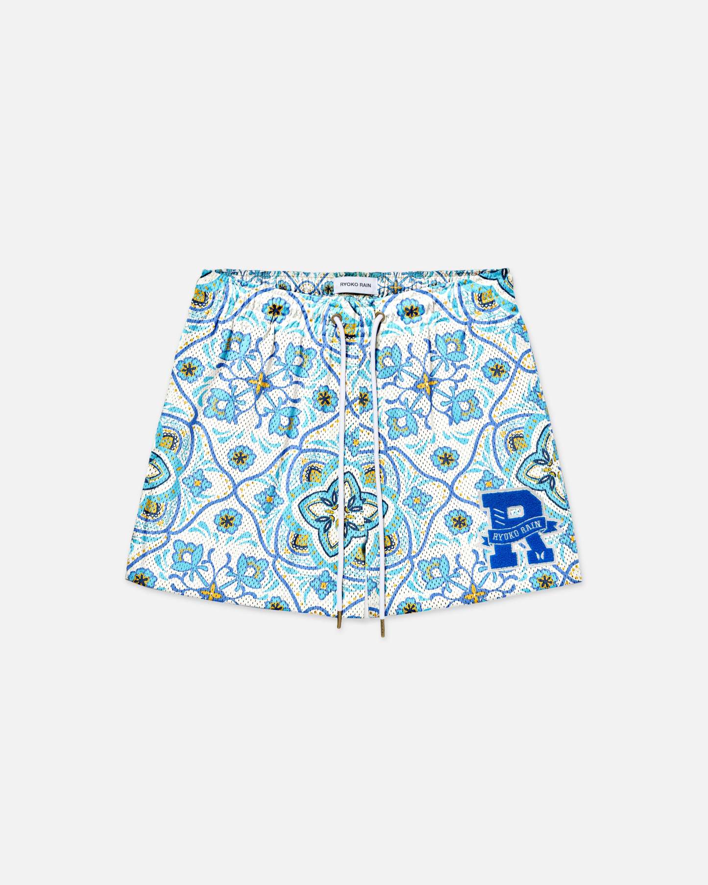 Deep pockets, elongated draw cord, and above the knee fit. 100% Polyester mesh.