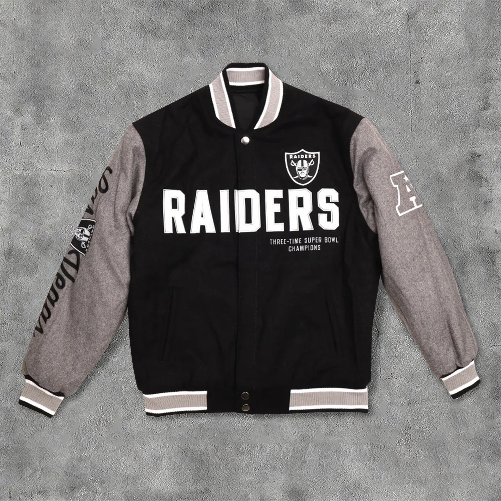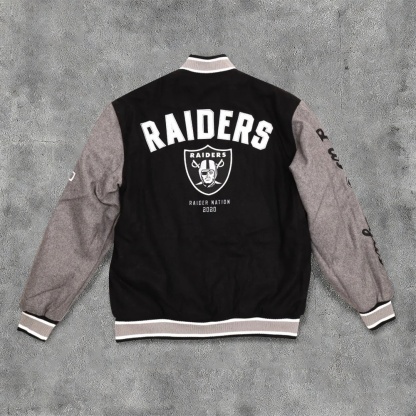 Personalized Raiders Print Color Block Baseball Jacket