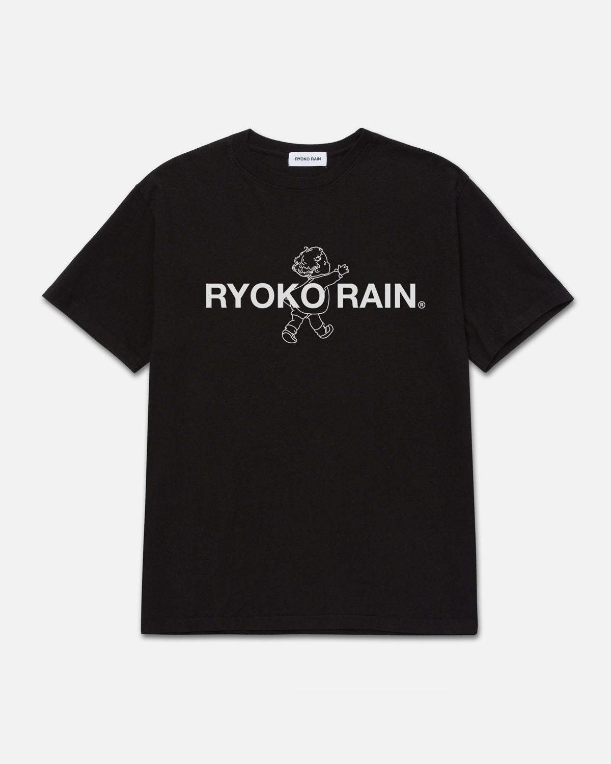 Ryoko Rain standard black tee with the white screen printed Ryoko Rain registered logo.