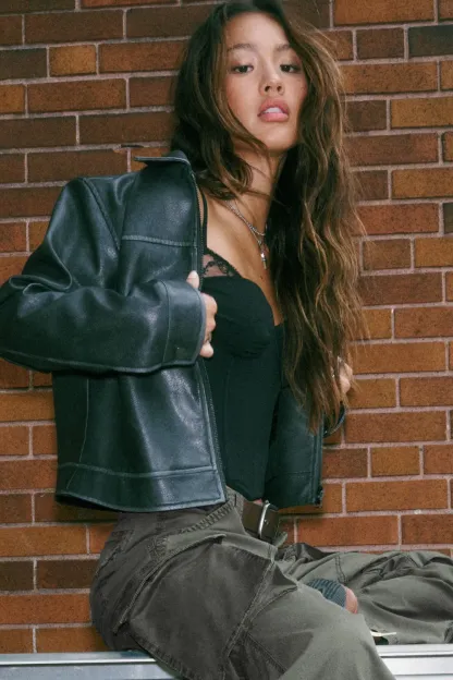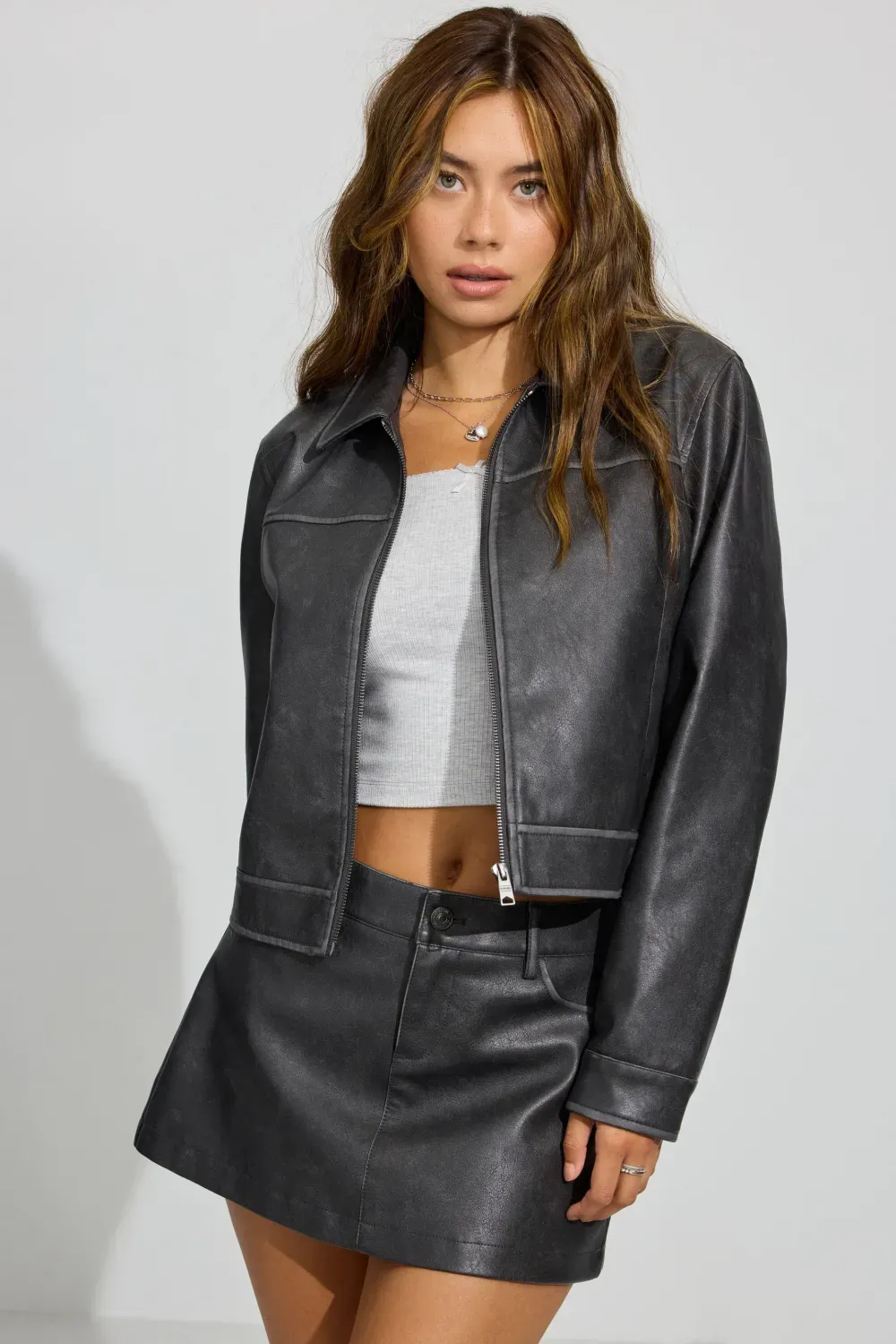 Faux Leather Worker Jacket