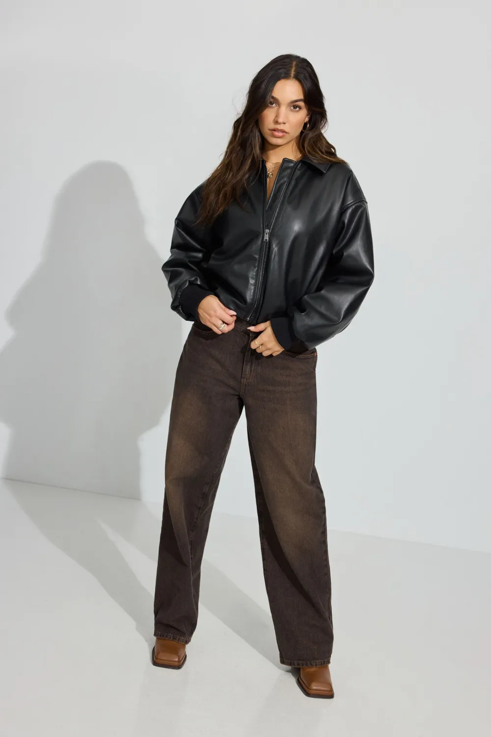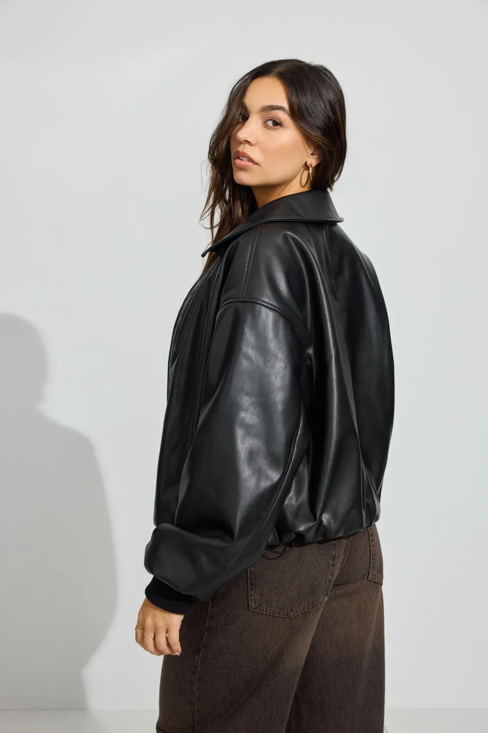 Faux Leather Puff Bomber