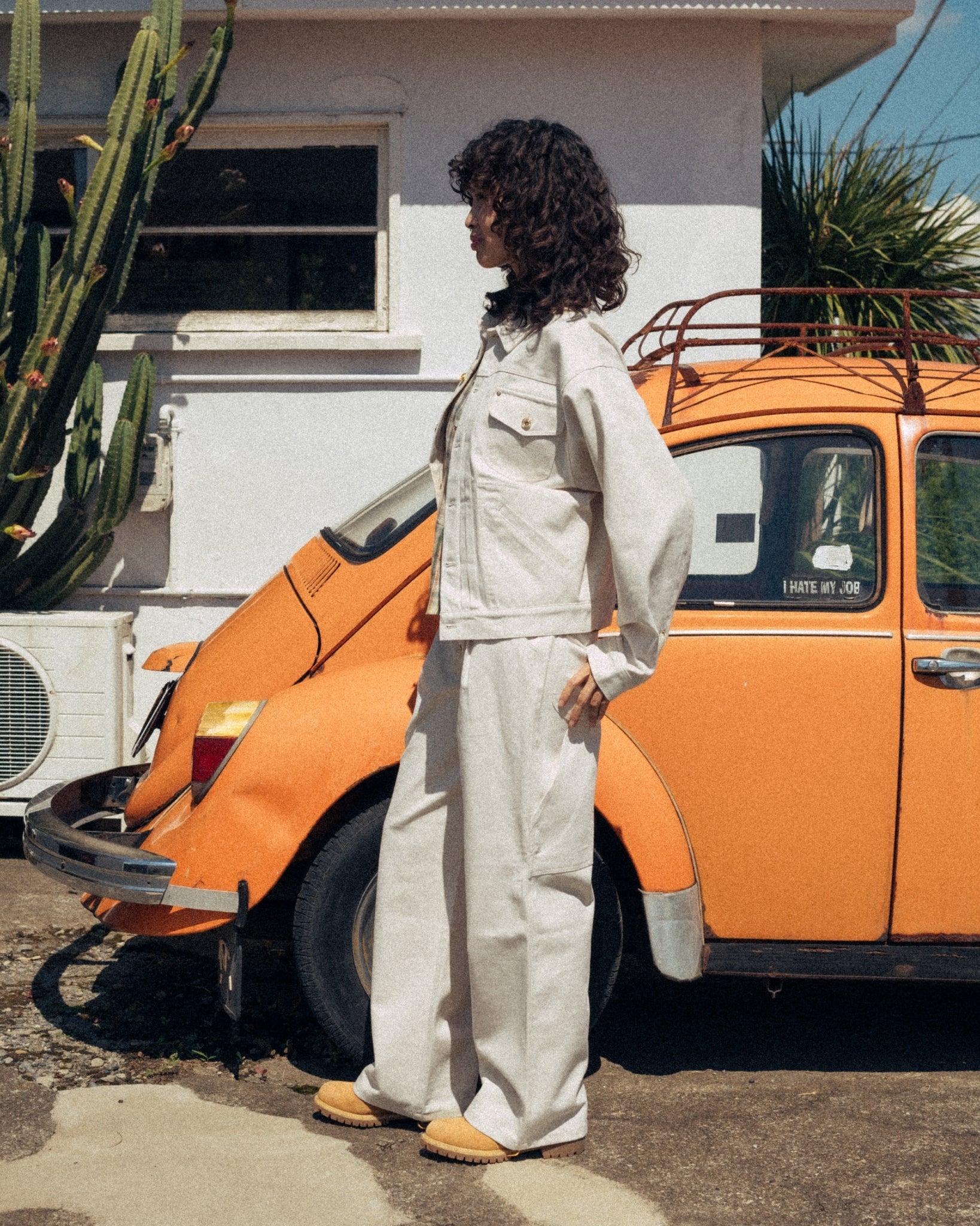 Rigid denim is used for the fabric, and it has a hard texture, but it is one of the attractions that the more you wear it, the more the texture increases. It is a durable and long -lasting item, especially perfect for casual scenes and street styles.
