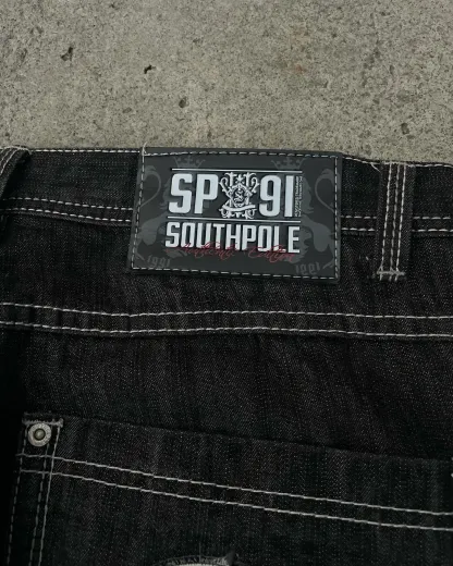 Y2K New Southpole Jeans American Retro Gothic Graphic Embroidery Baggy Jeans Men's Harajuku Hip-Hop Wide-Leg Pants Street Wear