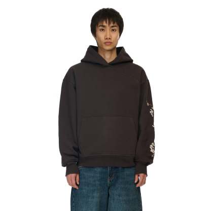 460gsm brushed cotton / 100% preshrunk cotton / embroidery on back, sleeve and hood / piped-style front seam / fits true to size