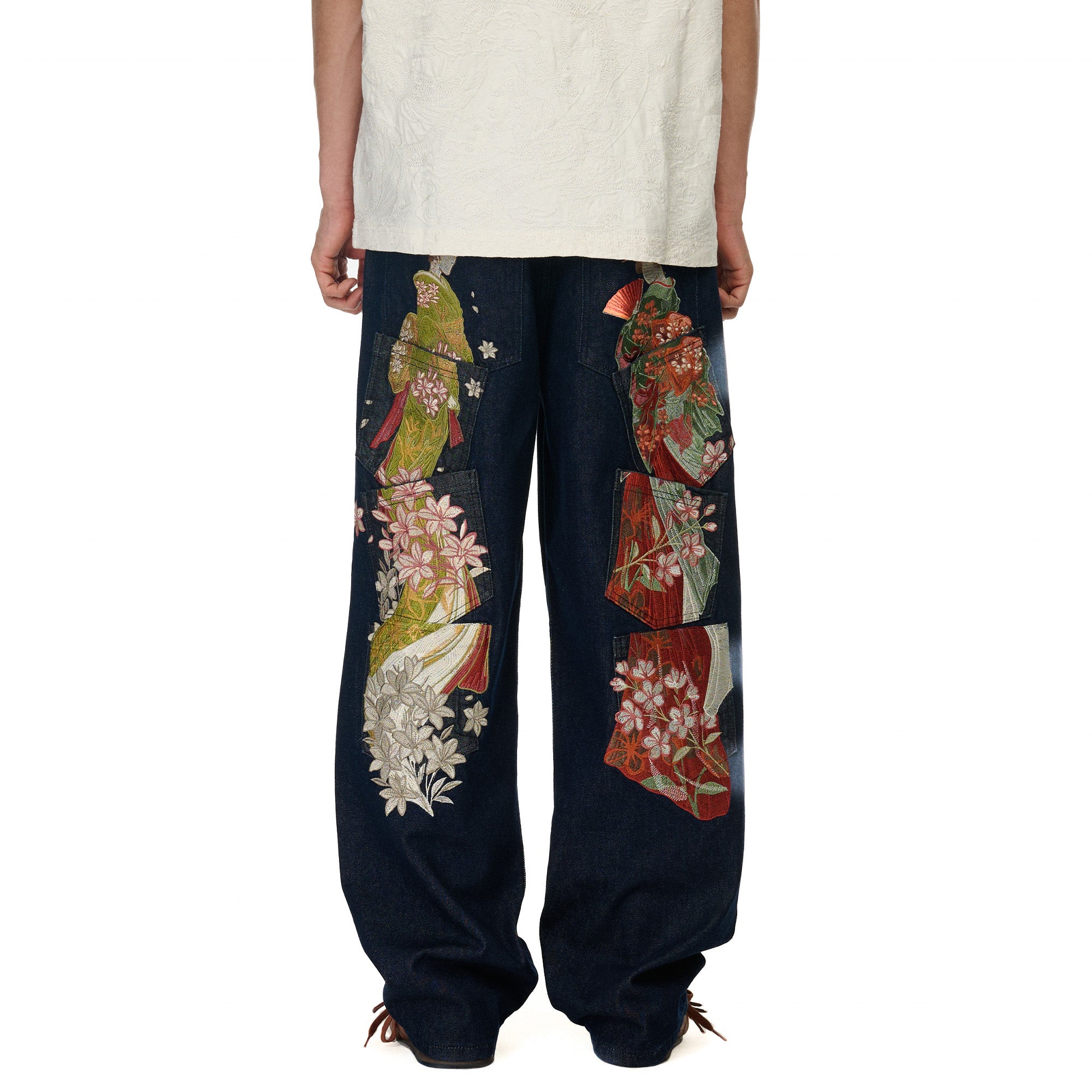 14,5oz denim / 100% cotton / different fabric on belt and front pockets / pocket details on back / embroidery on back / wash inside out / balloon fit / fits true to size